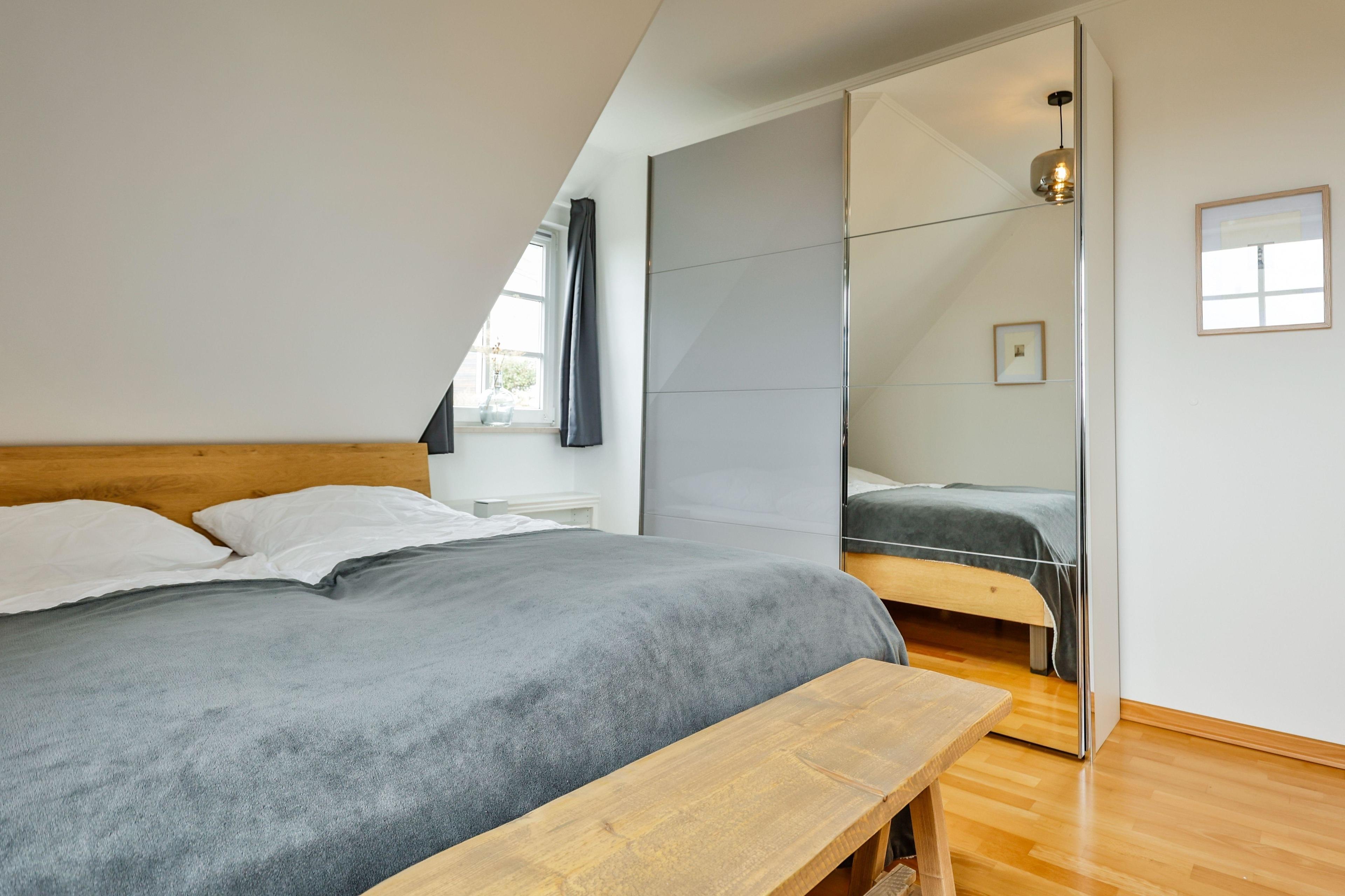 Komplett ausgestattete 3-Zimmer-Maisonette-Wohnung, Wohn-/Essbereich mit Küchenzeile, Balkon Richtung Süden. Schlafzimmer mit Doppelbett und Kleiderschrank, Badezimmer mit Dusche, Waschmaschine mit Trocknerfunktion. Offene Wendeltreppe führt zur Galerie mit 2 getrennten Alkovenbetten + Schlafmöglichkeit auf Schlafsessel. Traumhafter, unverbauter Meer- und Dünenblick von Schlaf- und Wohnzimmer, Küche, sowie Galerie.