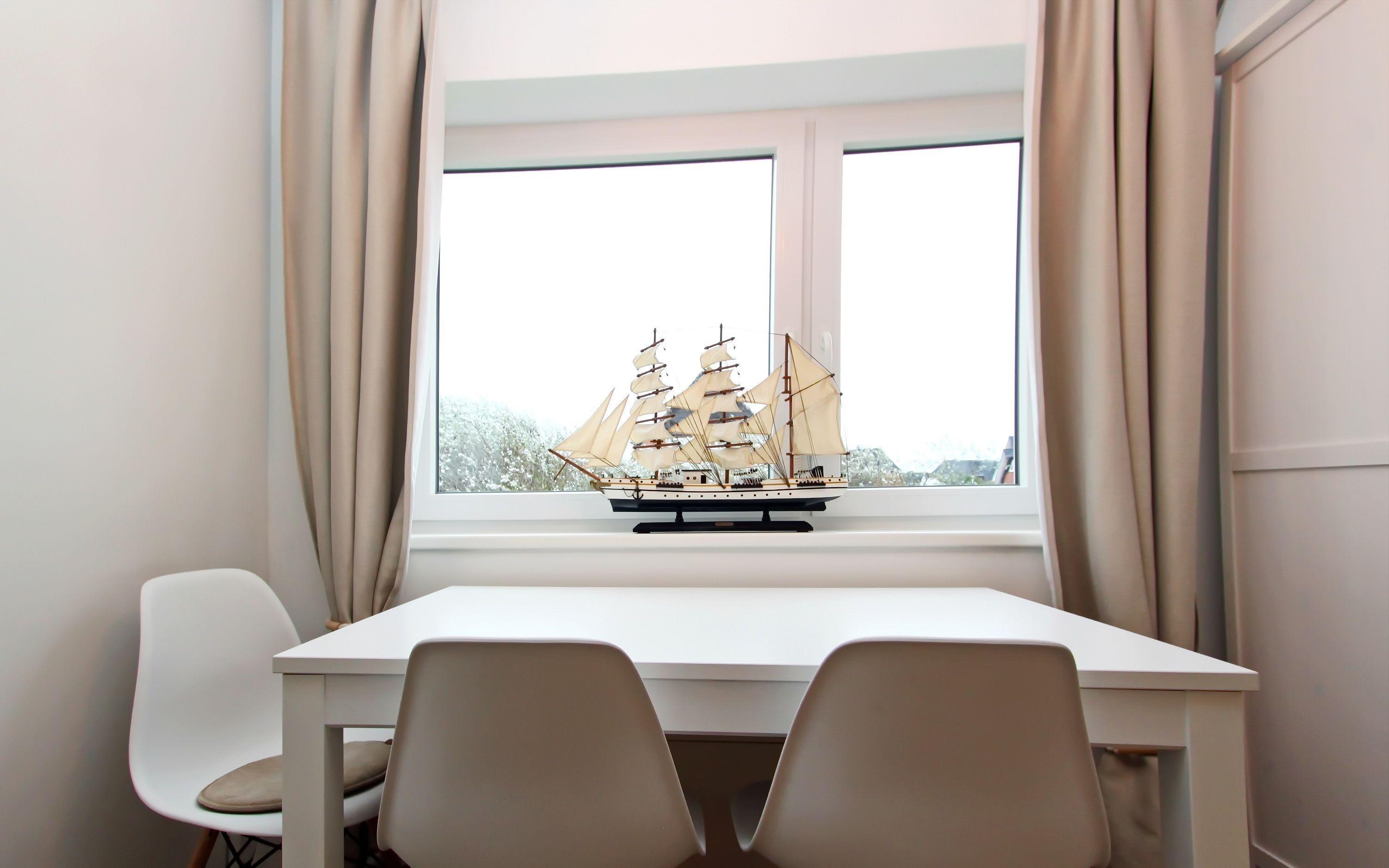 Aufgeteilt ist es wie folgt: 1 Wohn-/Schlafraum mit Doppelbett, 2 Sitzer-Couch, großer Esstisch am Fenster, Schrank mit ausreichend Stauraum und SAT-Flat-TV. Die neue separate Küche verfügt über ein 4 Platten Cerankochfeld, Backofen, Kühlschrank mit Gefrierfach, sowie alle Utensilien, die Sie benötigen, um sich selbst zu versorgen. Neues Duschbad/WC; Flur mit Garderobe.