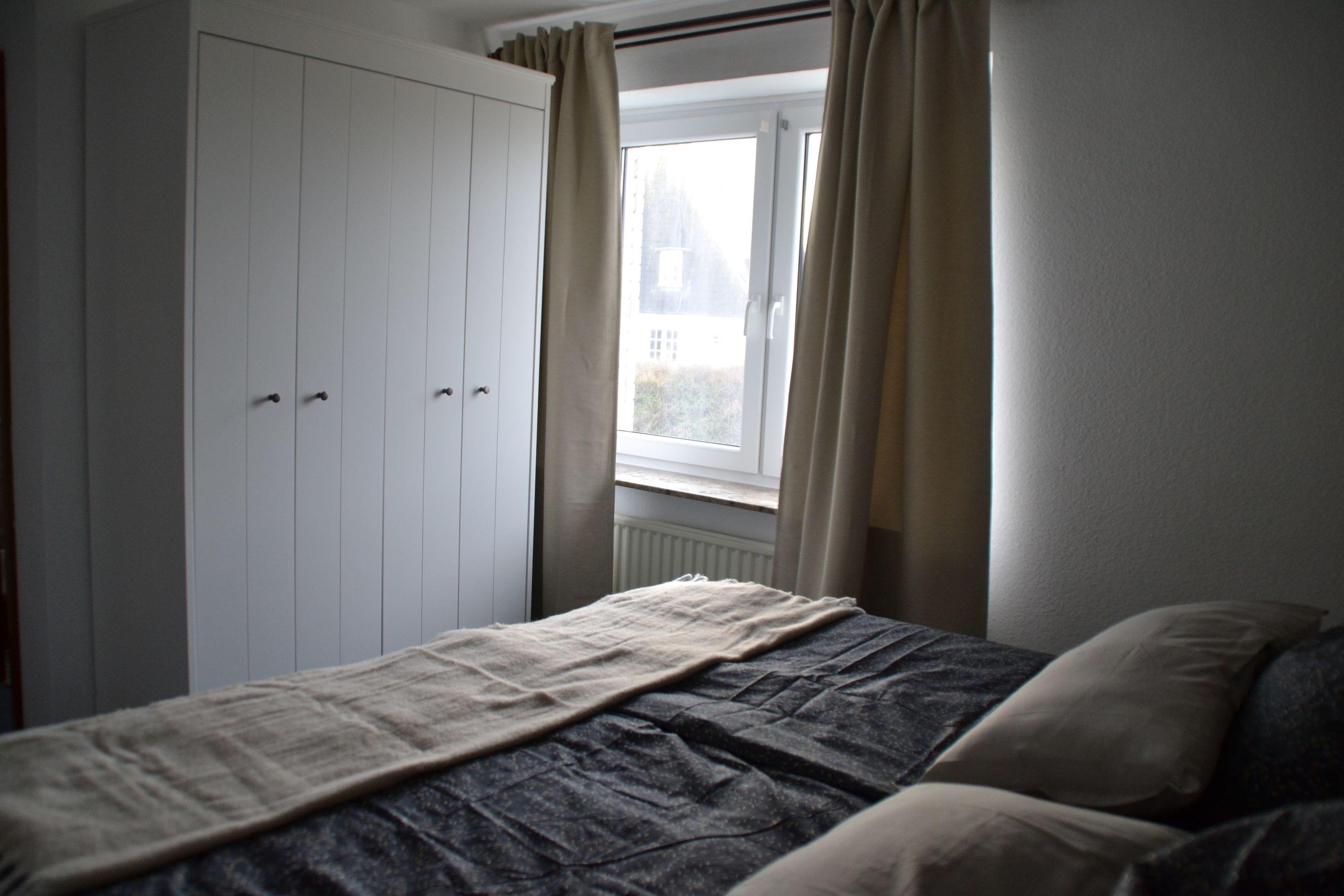 Diese kleine Ferienwohnung für zwei Personen im Haus Meerblick hat zwei getrennte Zimmer, davon ein neues Schlafzimmer mit Boxspringbett, und ein Wohnzimmer mit Küchenzeile.