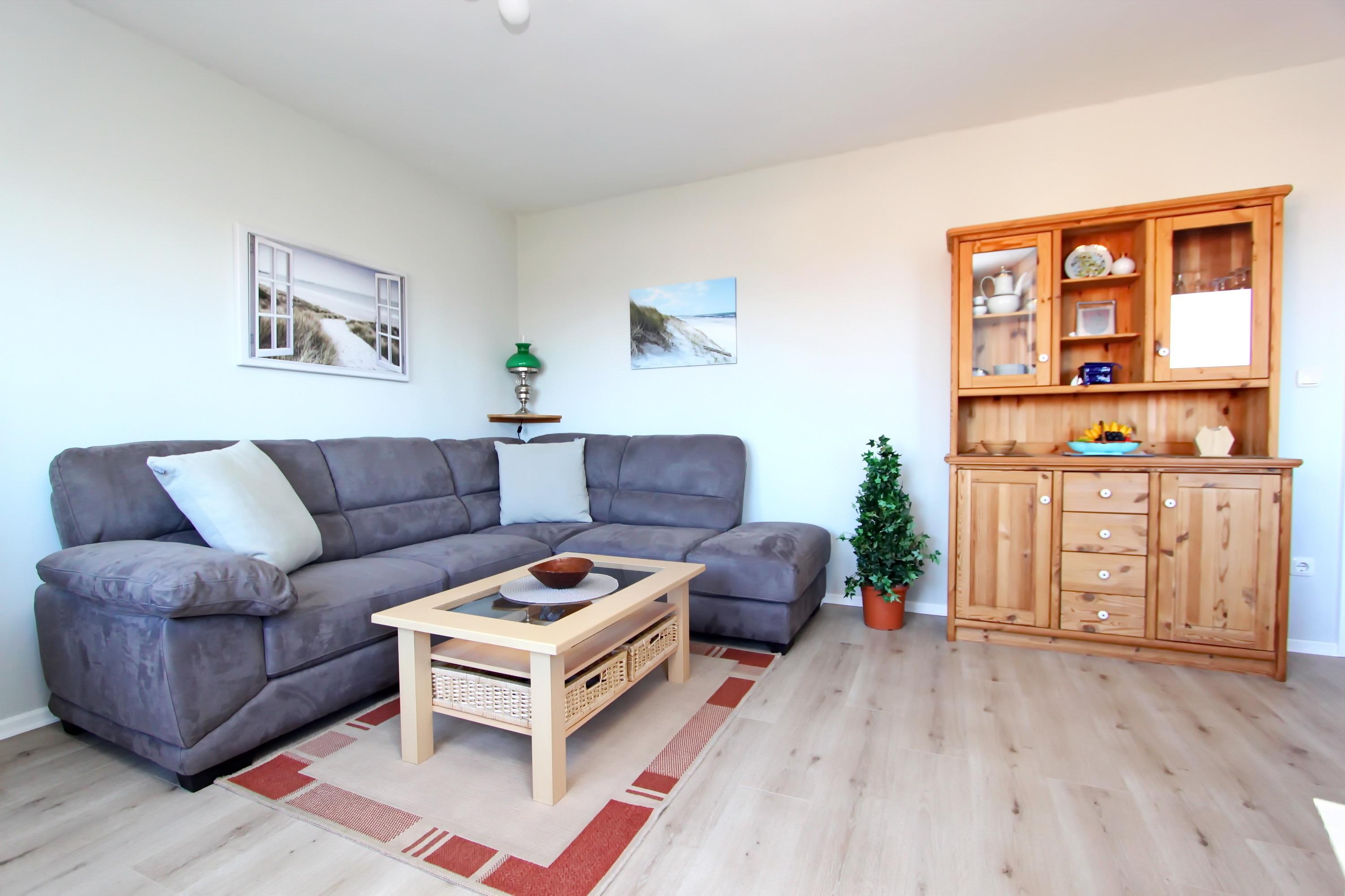 modernes, Allergiker geeignetes 2 Zi.-Appartement im 1.OG mit ca. 50m² für bis zu 2 Personen; Im Wohnzimmer befindet sich ein Tisch sowie eine Wohnlandschaft; Essplatz für 2 Personen, Westbalkon mit Balkonmöbel, neuer Sat-Smart-TV; 1 Schlafraum mit Doppelbett (zwei einzelne Matratzen), Schrank und Sideboard; separate Einbauküche mit Ceranfeld, Backofen, Mikrowelle, Geschirrspüler, kleiner Gefrierschrank sowie einem kleinen Essplatz mit Stühlen für 2 Personen; Flur mit Garderobenschrank; Duschbad/WC mit Venylboden und Waschmaschine. Das Schlafzimmer ist mit Laminat ausgelegt. Wohnzimmer, Flur und Küche sind mit Paradorboden versehen . Im Haus gibt es einen Münztrockner und Trockenraum. Zum Appartement gehört ein PKW-Stellplatz (Nr. 22) vorm Haus. Das Rauchen sowie die Tierhaltung sind nicht gestattet!!! Das Appartement verfügt über kostenloses WLAN. Änderungen der Ausstattung vorbehalten.