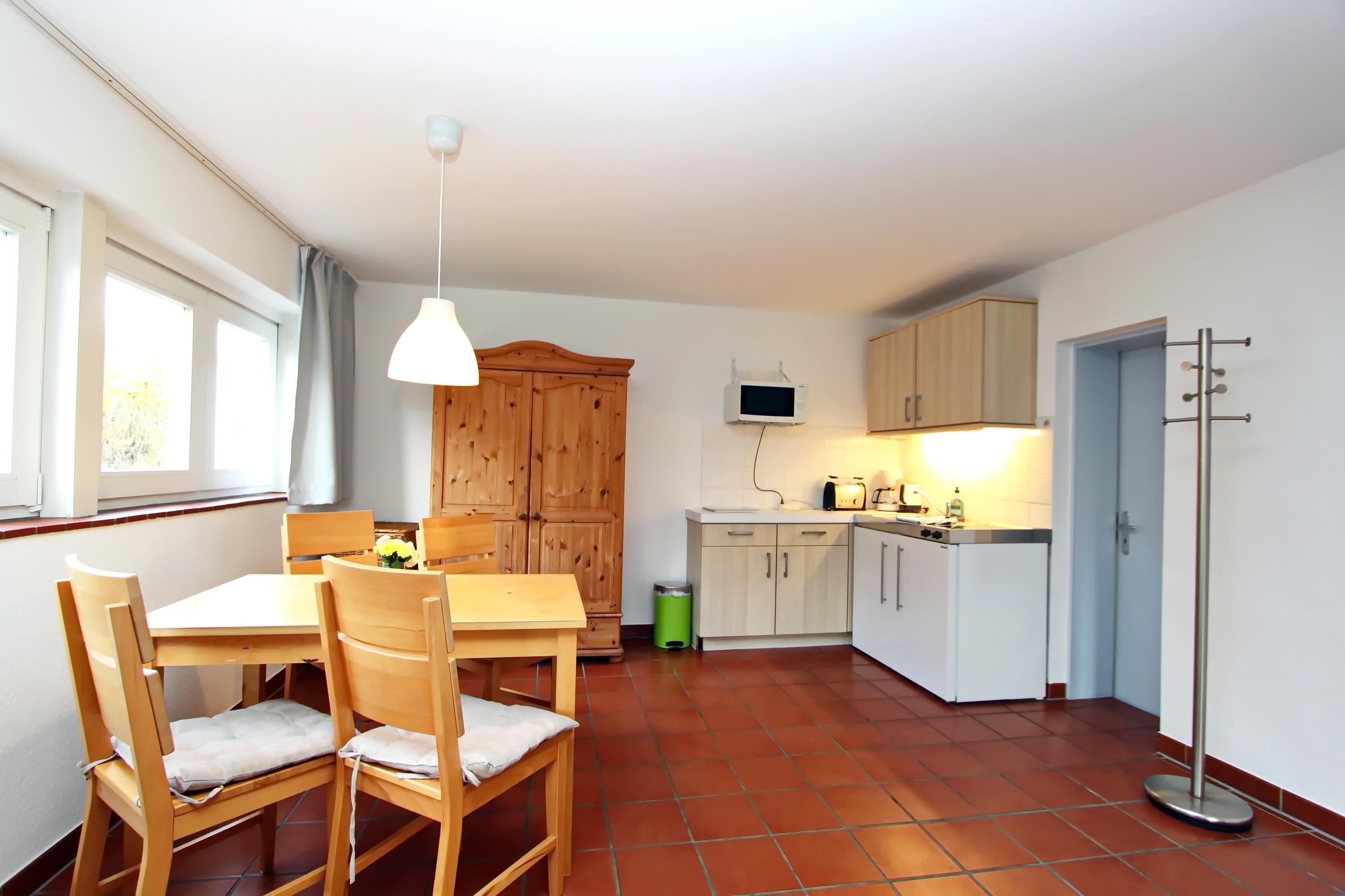 Weitere Ausstattung: Farb TV-Sat und Mikrowelle; eine Waschmaschine und einen Wäschetrockner steht den Gästen im Keller des Hauses gegen eine Gebühr zur Verfügung.