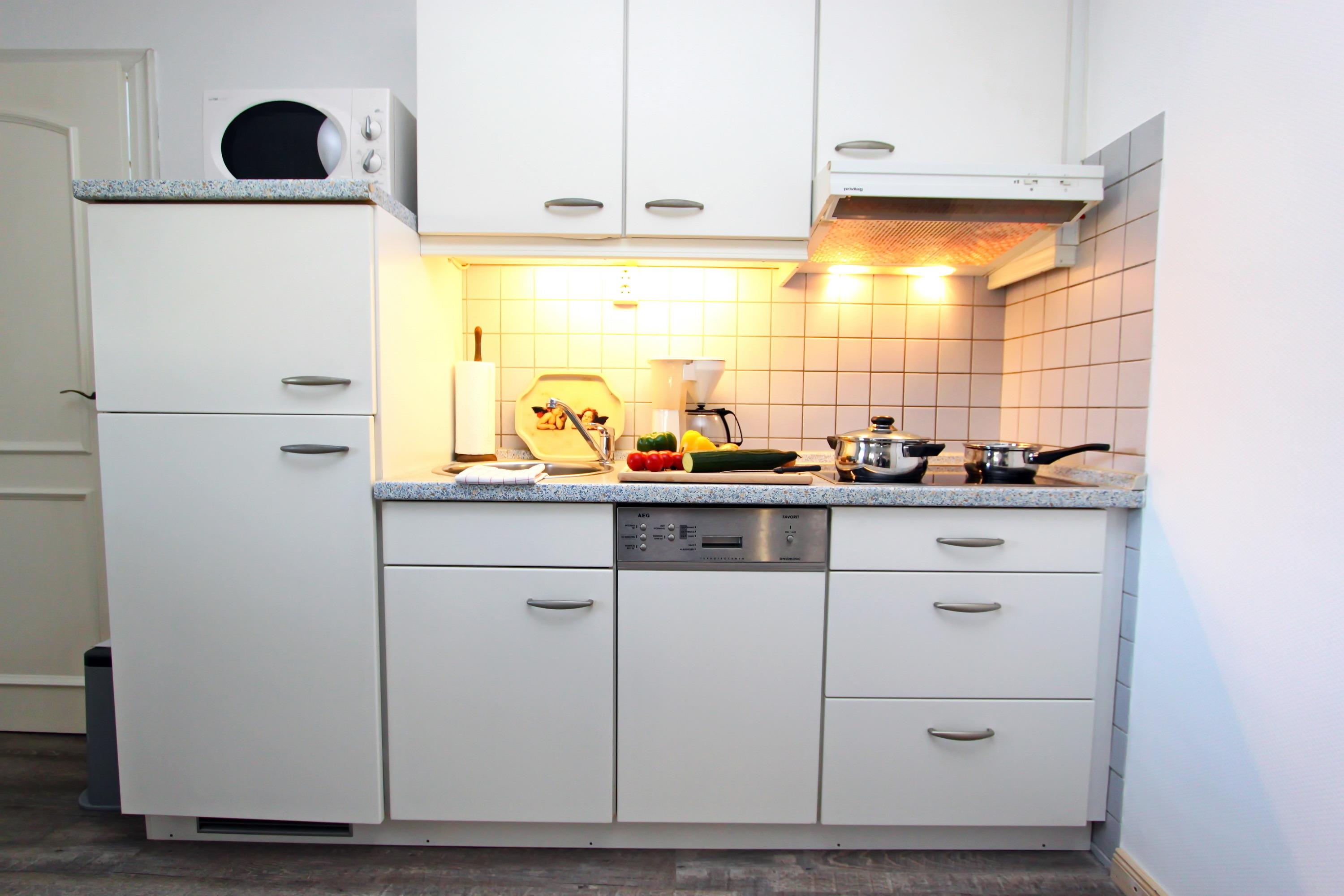 große gemütliche Ferienwohnung, die auf Ihren ca. 40 qm Platz für bis zu 3 Personen bietet. Im Wohnraum ist eine offene Küchenzeile mit einer Kühl-/Gefrierkombination, 4-Platten Cerankochfeld, Mikrowelle, Geschirrspüler, Kaffeemaschine, Toaster, Eierkocher und alles was man sonst so in einer Küche braucht zu finden. Ein großer, gemütlicher Sessel der sich zu einem vollwertigen Bett ausklappen lässt, ein Esstisch für drei Personen, sowie ein Relaxsessel samt Couchtisch laden zum Verweilen ein. Ein Satelliten-TV und eine kleine Kompaktanlage mit CD-Player fehlen ebenfalls nicht. Im separaten Schlafraum mit Doppelbett befinden sich noch Nachtschränke, ein Sideboard mit Satelliten-TV und ein großer Kleiderschrank, der ausreichend Stauraum bietet. Kostenloser Internetzugang via WLAN. Duschbad sowie Flur/Windfang mit Garderobe. Direkter Zugang vom großen Gemeinschaftsgarten. Überdachter Laubengang. PKW-Stellplatz am Haus.