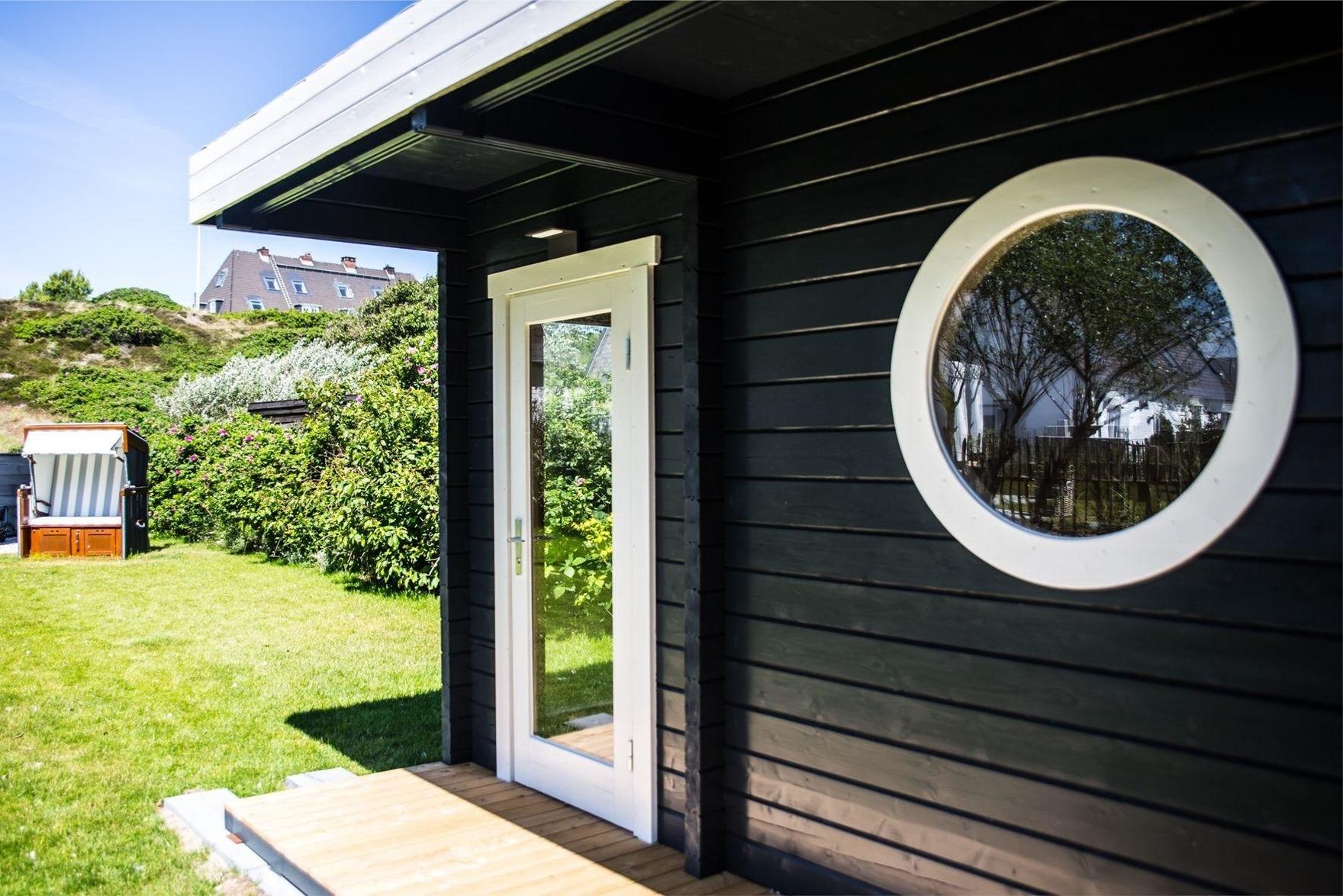 Fünfhundert Quadratmeter Sylt - direkt um das Ferienhaus StrönHüs. Zum Spielen, Toben, Entspannen, Genießen. Die schöne Terrasse fängt jeden Sonnenstrahl ein und bietet bei Hitze auch mal unter dem großen Sonnenschirm ein Schattenplätzchen. Hochwertige Gartenmöbel, ein echter Sylter Strandkorb, Weber-Grill, ein eigenes Saunahaus, Meeresrauschen aufgrund der Nähe zum Meer und das berühmte Sylter Dünengras auf einer Dünenlandschaft machen das Luxusferienhaus StrönHüs zu einem echten Paradies.