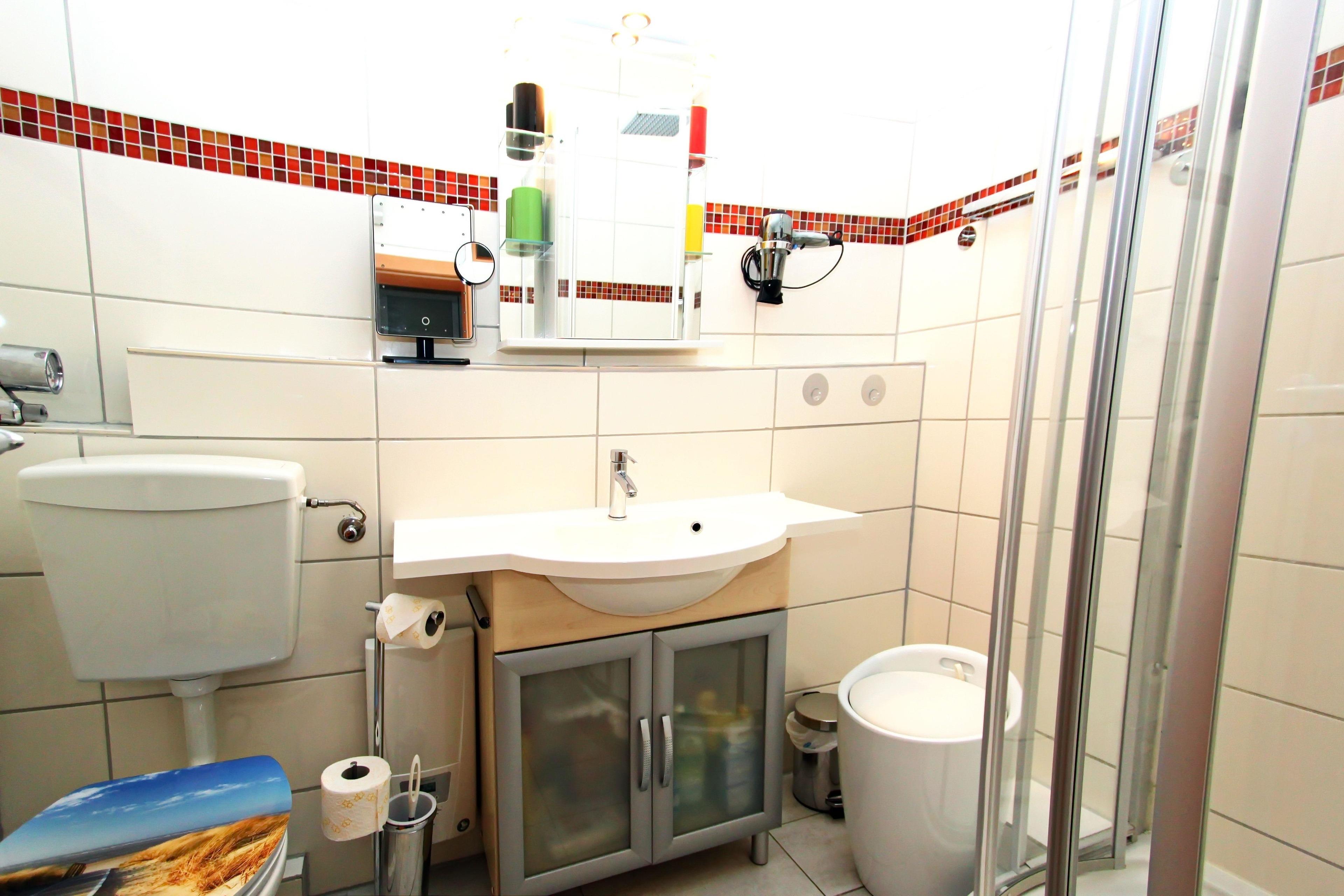 Die Schränke bieten ausreichend Stauraum. Duschbad/WC. Flur mit Garderobe. Das Wohn-/Schlafzimmer und das Schlafzimmer sind mit Laminat ausgelegt. Der Küchen-, Flur- und Badbereich ist gefliest. Kostenloses WLAN. Zum Appartement gehört der Außenstellplatz mit der Nr. 19. Waschküche im Haus. Das Rauchen ist verboten. Die Tierhaltung ist auf Anfrage gestattet. Teilrenovierung Frühjahr 2021. Änderungen der Ausstattung vorbehalten.