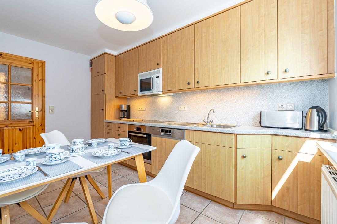 Die Küche verfügt u.a. über 4er Ceranfeldherd, Backofen, Mikrowelle und Geschirrspüler.
