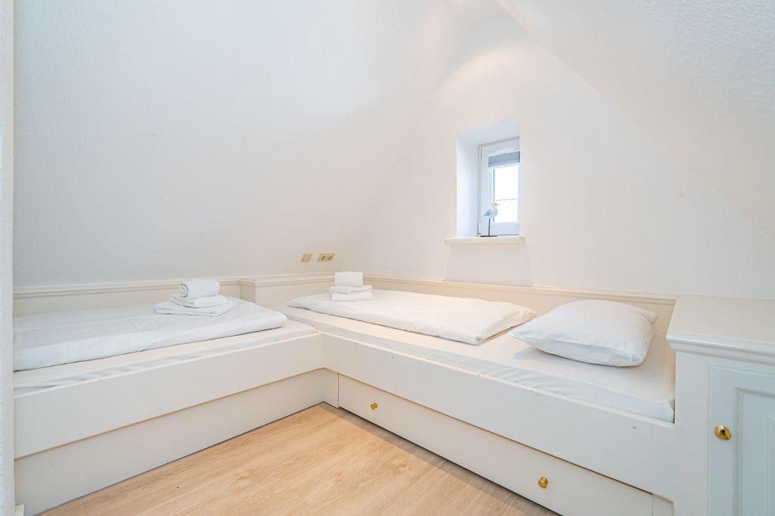 ein Schlafzimmer ist mit zwei Einbaubetten (je 90 x 200 cm) eingerichtet.