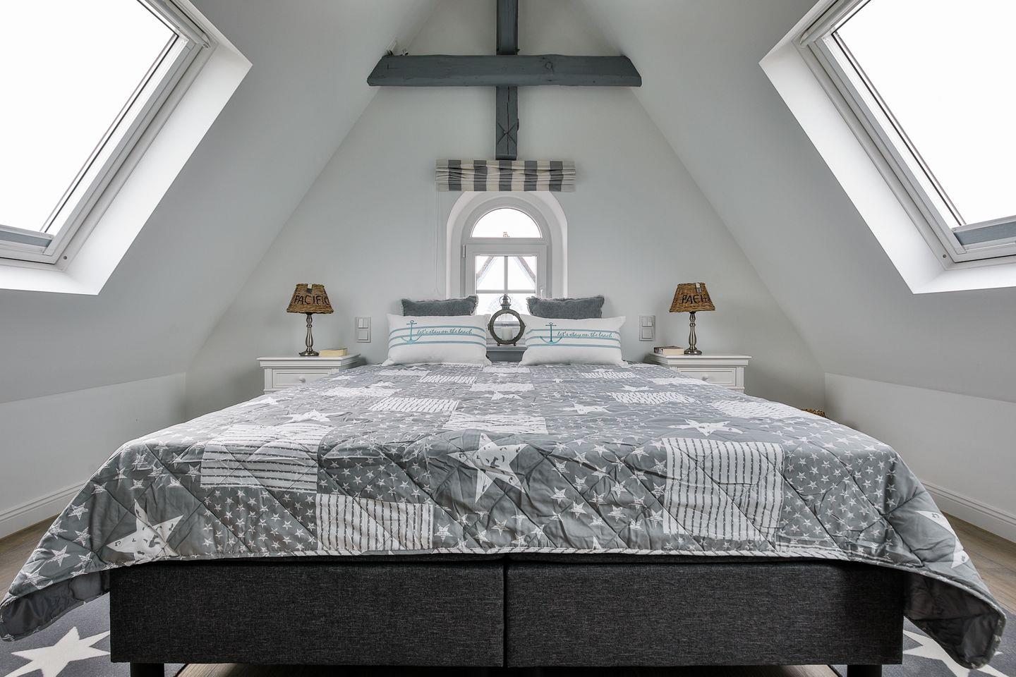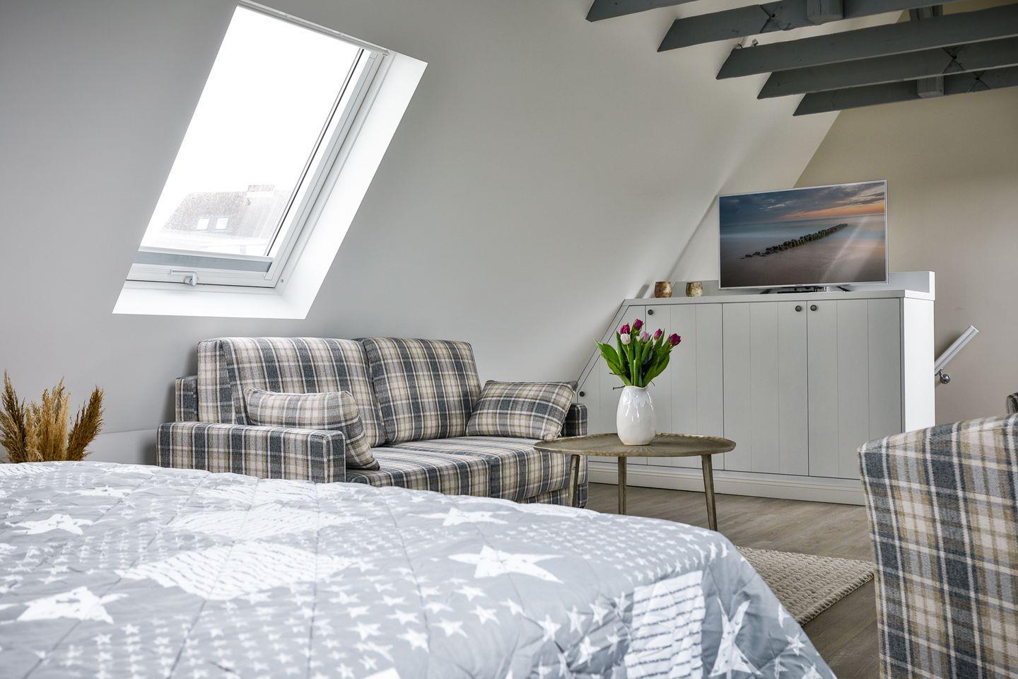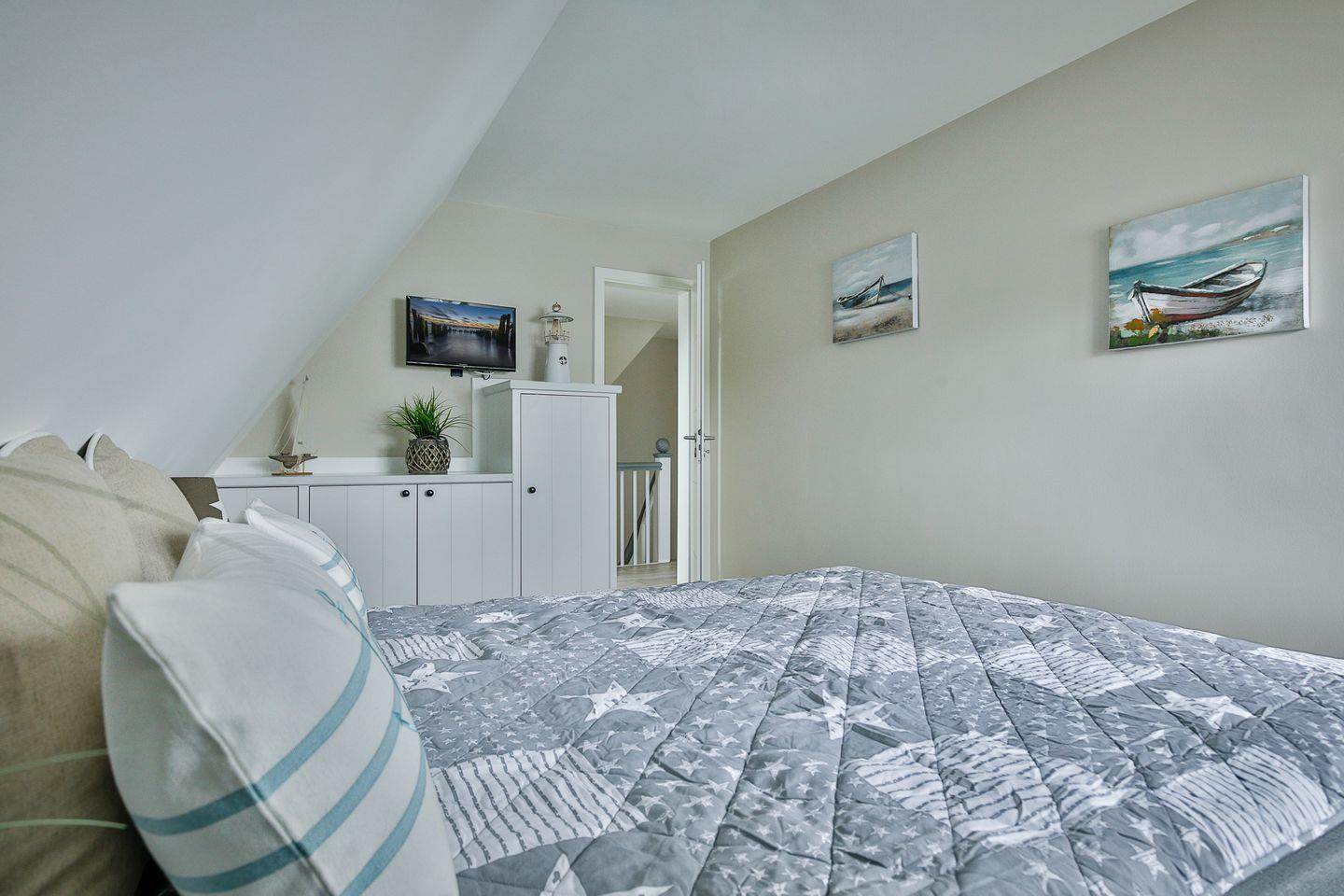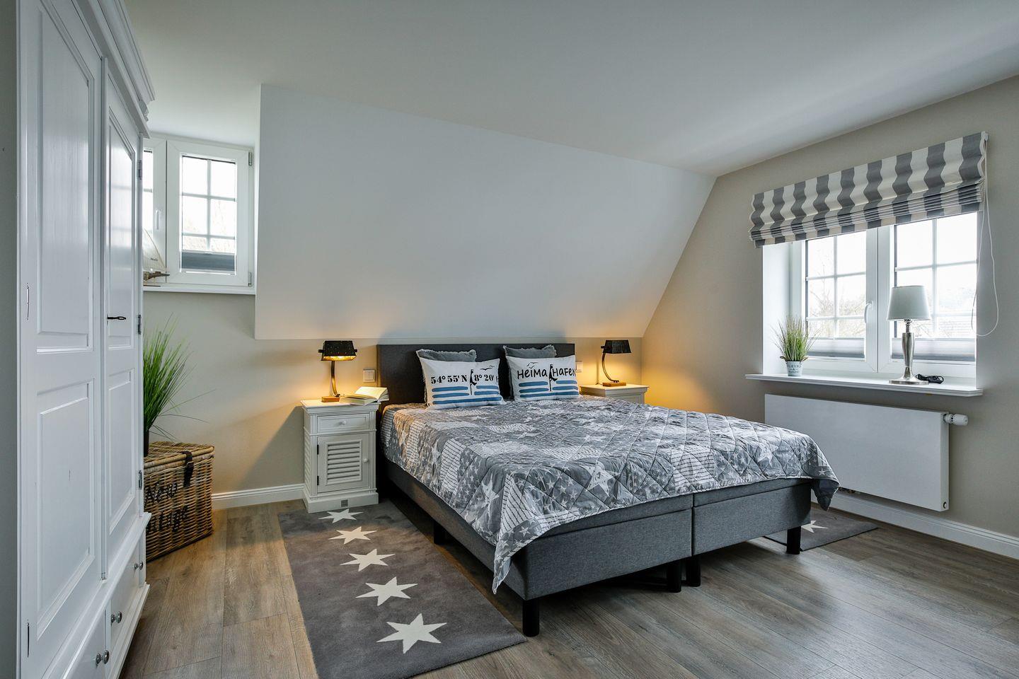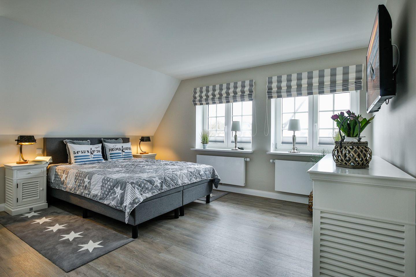 Schlafraum auf Sie wartet. Neben einem Boxspringbett, TV und Stauraum verfügt