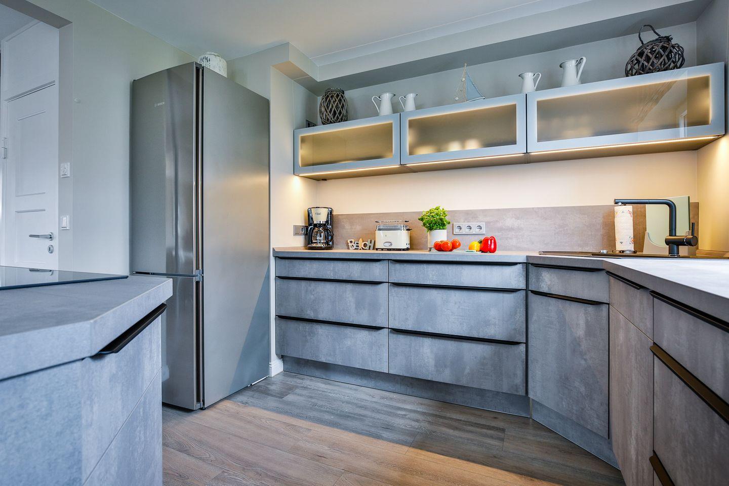 Küche mit direktem Zugang zur Terrasse. Hier warten Gartenmöbel und ein