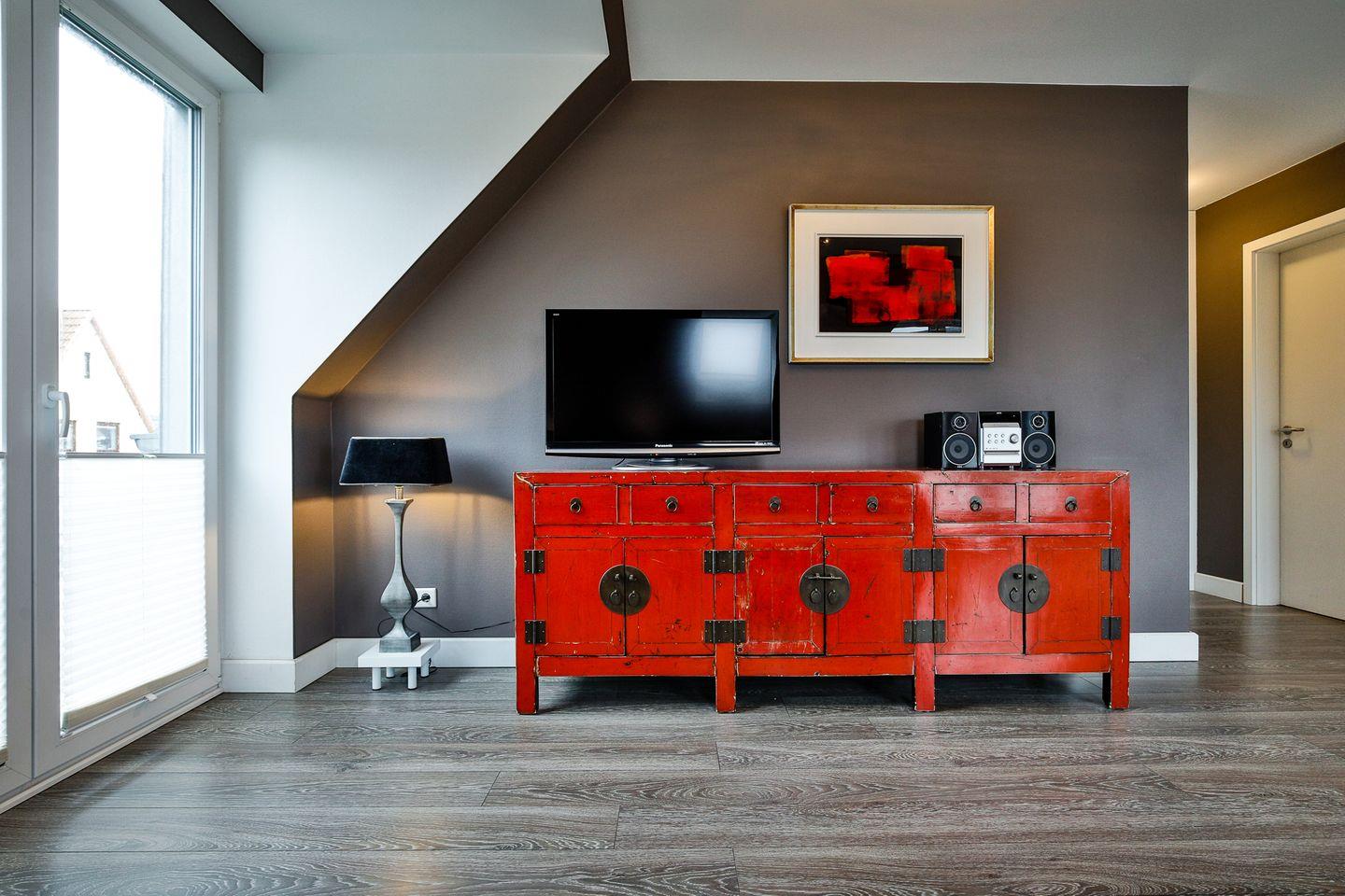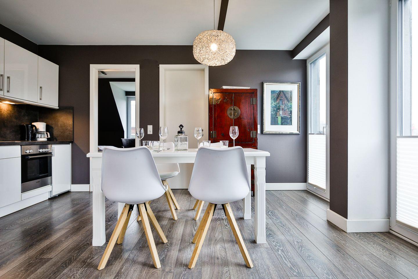 für bis zu 4 Personen. Der modern eingerichtete Wohnraum mit gemütlicher