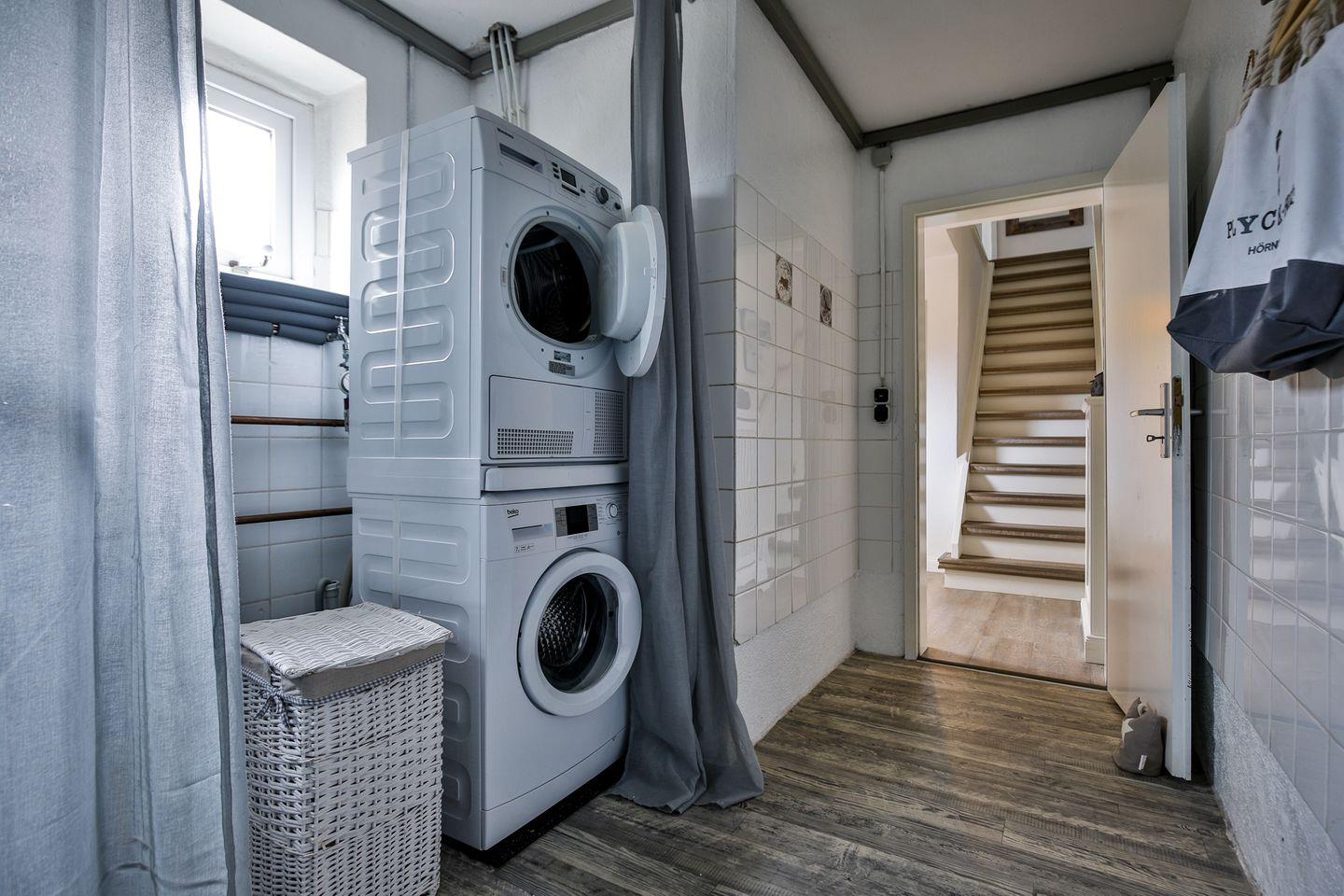Hauswirtschaftsraum mit Waschmaschine und Trockner. Kostenfreies W-Lan und ein