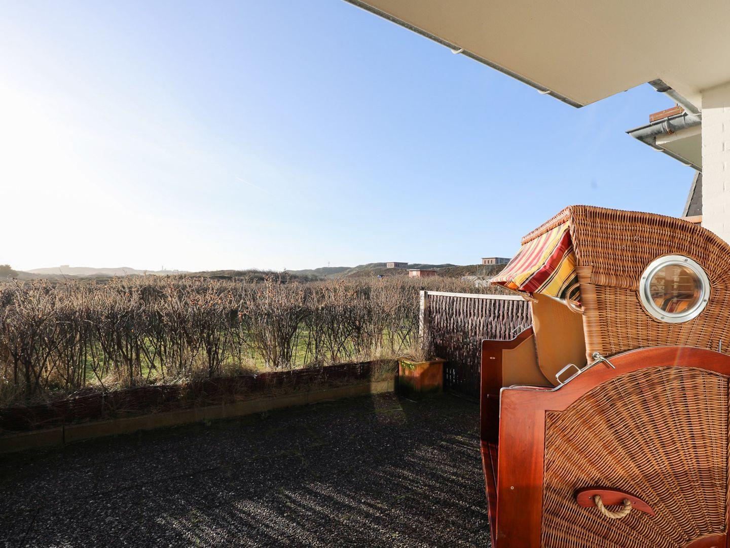 hier gelangen Sie auf die großzügige Terrasse mit eigenem Strandkorb und Blick