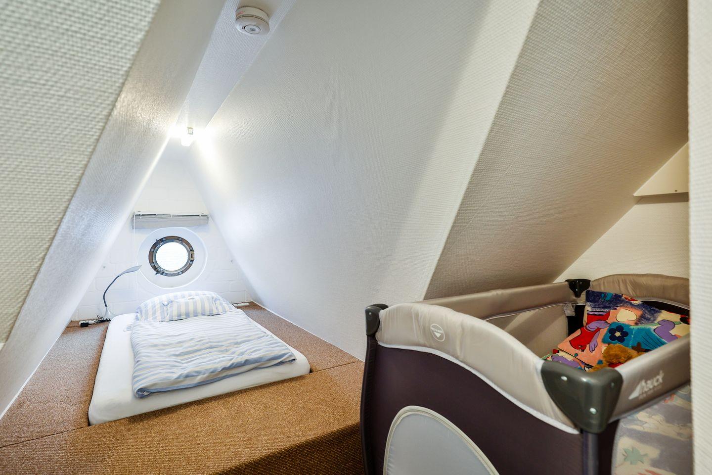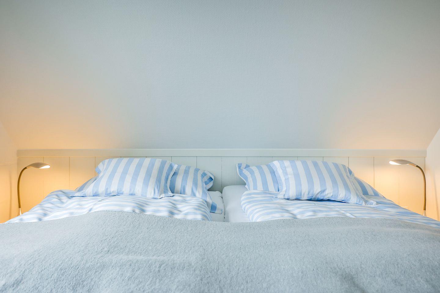 gemütliche Schlafbereich, welcher in eine Schräge eingebaut ist.