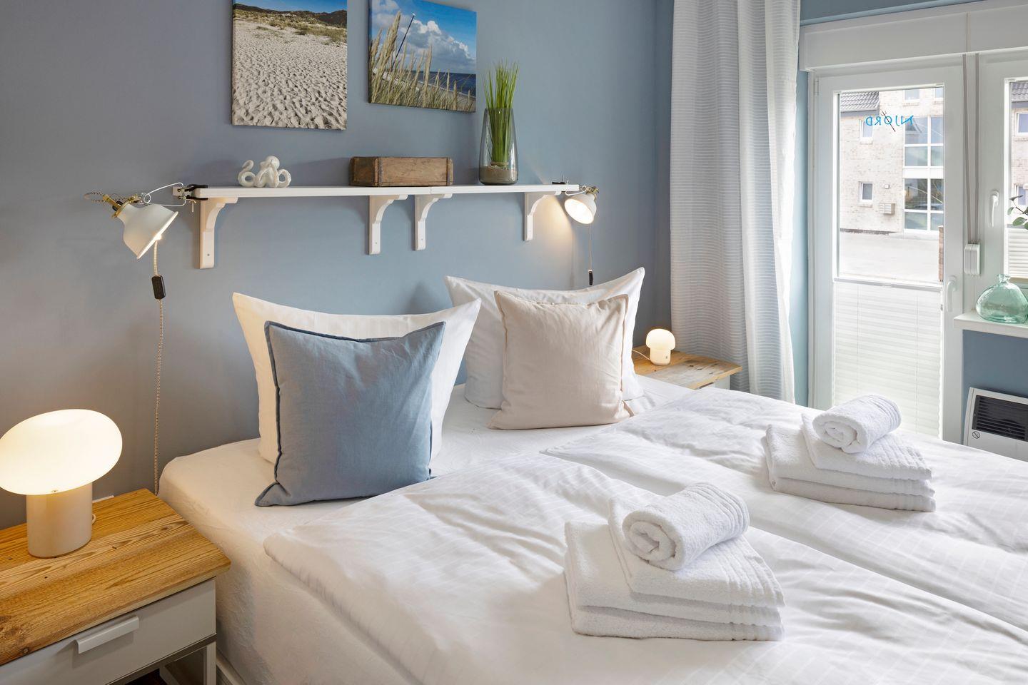 Beide Schlafräume sind mit hochwertigen bequemen Doppelbetten (1,80 m x 2,00 m
