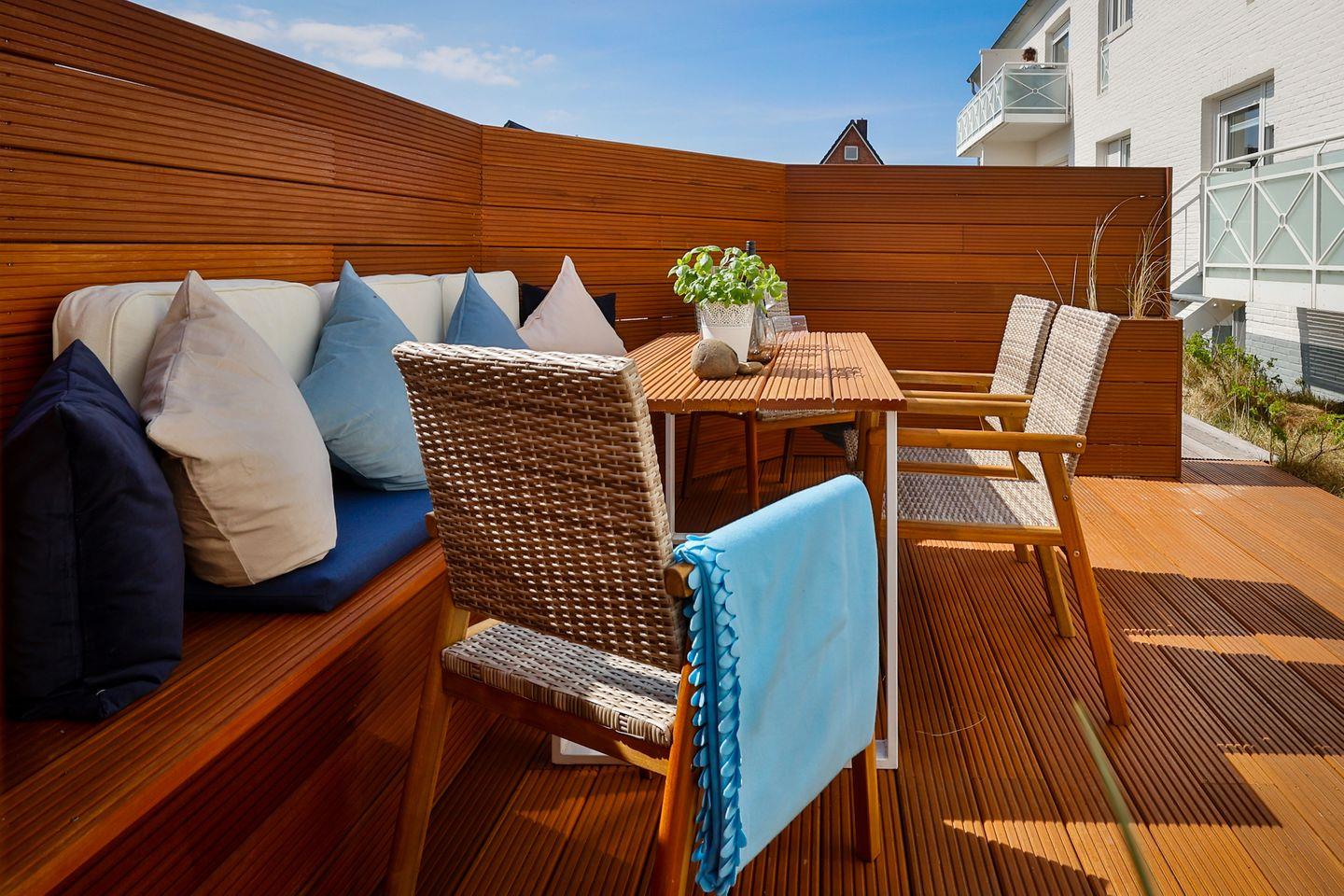 Sitzgelegenheiten und einer Liegefläche aus splitterfreiem Naturholz. Die
