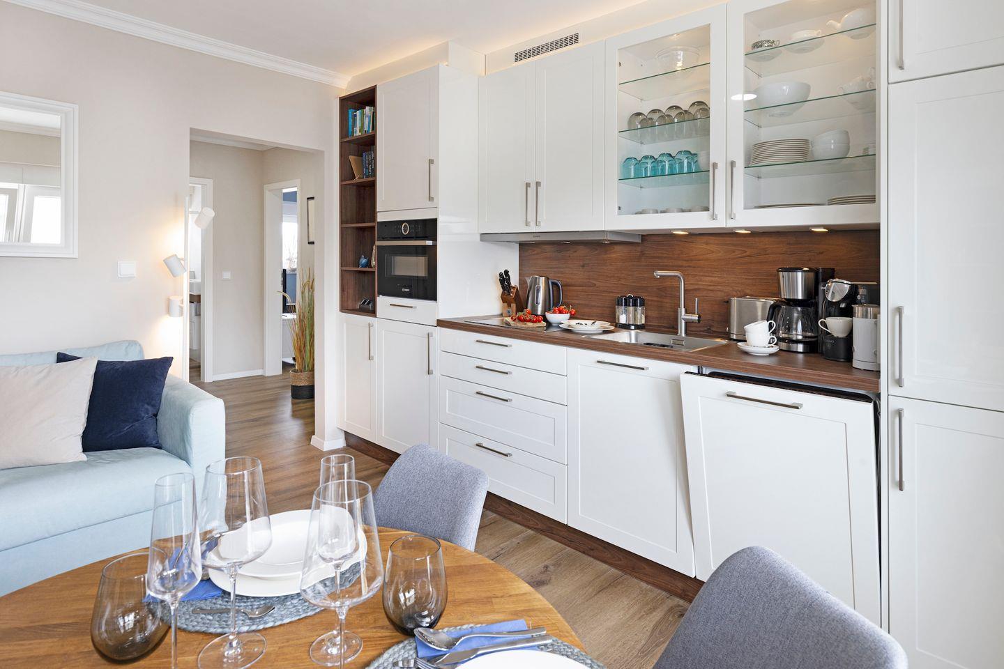 Der offene Wohn-Essbereich ist mit einer hochwertigen Marken-Komfortküche