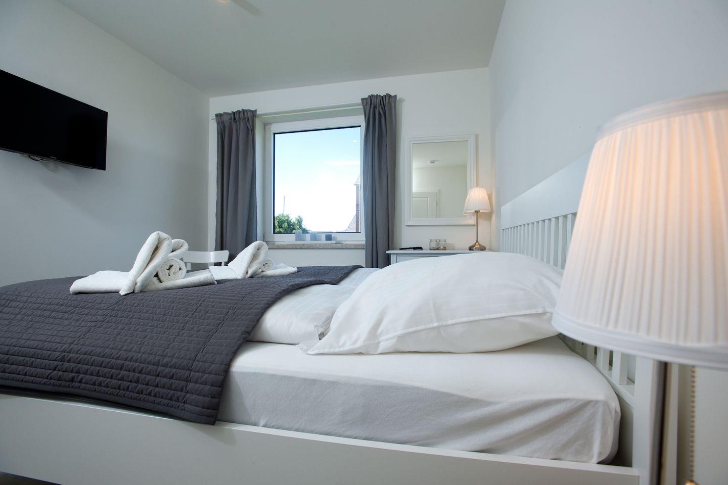 Wohn- und Schlafzimmer der Wohnung verfügen über einen Flachbildfernseher und ein WLAN-Zugang ist selbstverständlich vorhanden. Ein Auto-Stellplatz liegt direkt neben dem Eingang zur Wohnung. Die moderne und stilvolle Ausstattung der Wohnung macht sie zu einem idealen Ausgangspunkt für einen erholsamen Urlaub in Hörnum.