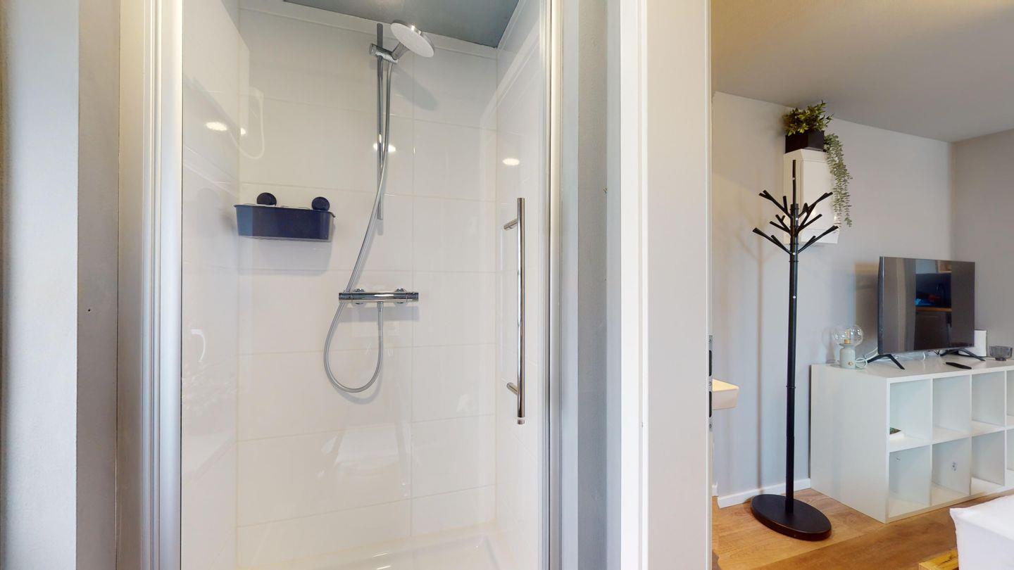 Ein Smart-TV steht den Gästen ebenso zur Verfügung, wie ein gut gestaltetes Badezimmer mit Dusche und WC.