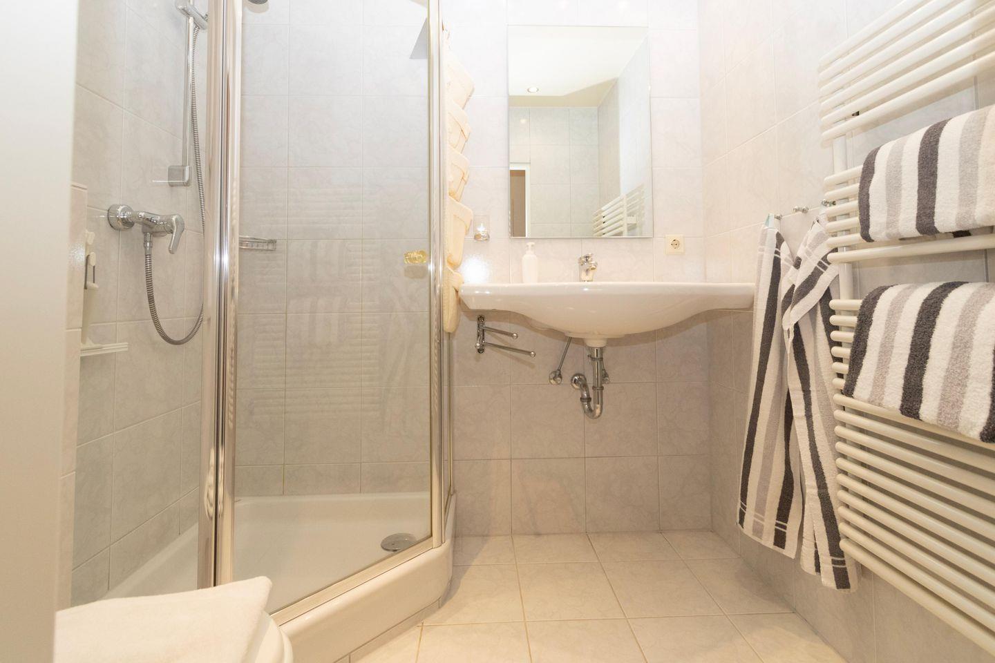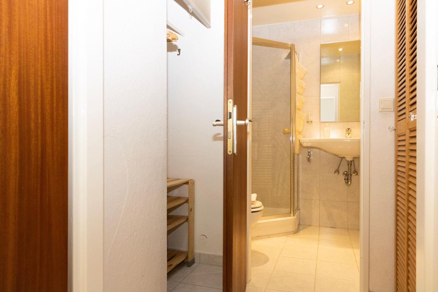 Die Wohnung ist mit einem separaten Bad und einer kleinen Küche ausgestattet.