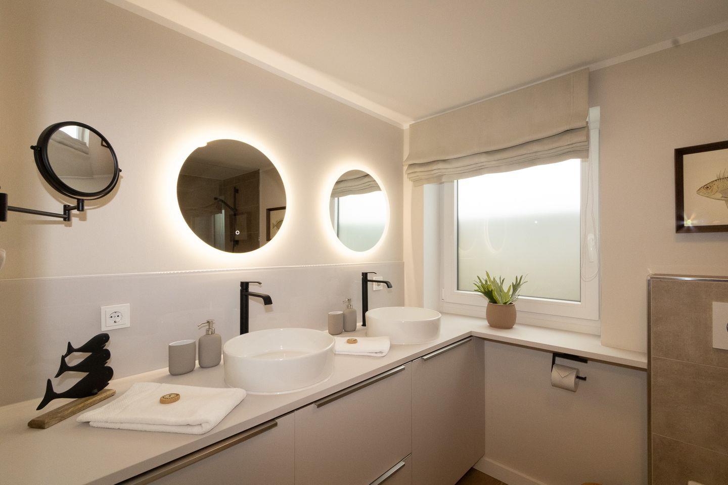Ferienwohnung für bis zu 4 Personen mit 2 Schlafzimmern. Ein besonderes Highlight ist die große Terrasse, die zum Südwesten ausgerichtet ist und die viel Platz für einen sommerlichen Essplatz und einen Strandkorb bietet. Hier kann man die absolute Ruhe mit Blick ins Grüne geniessen und die Seele baumeln lassen.