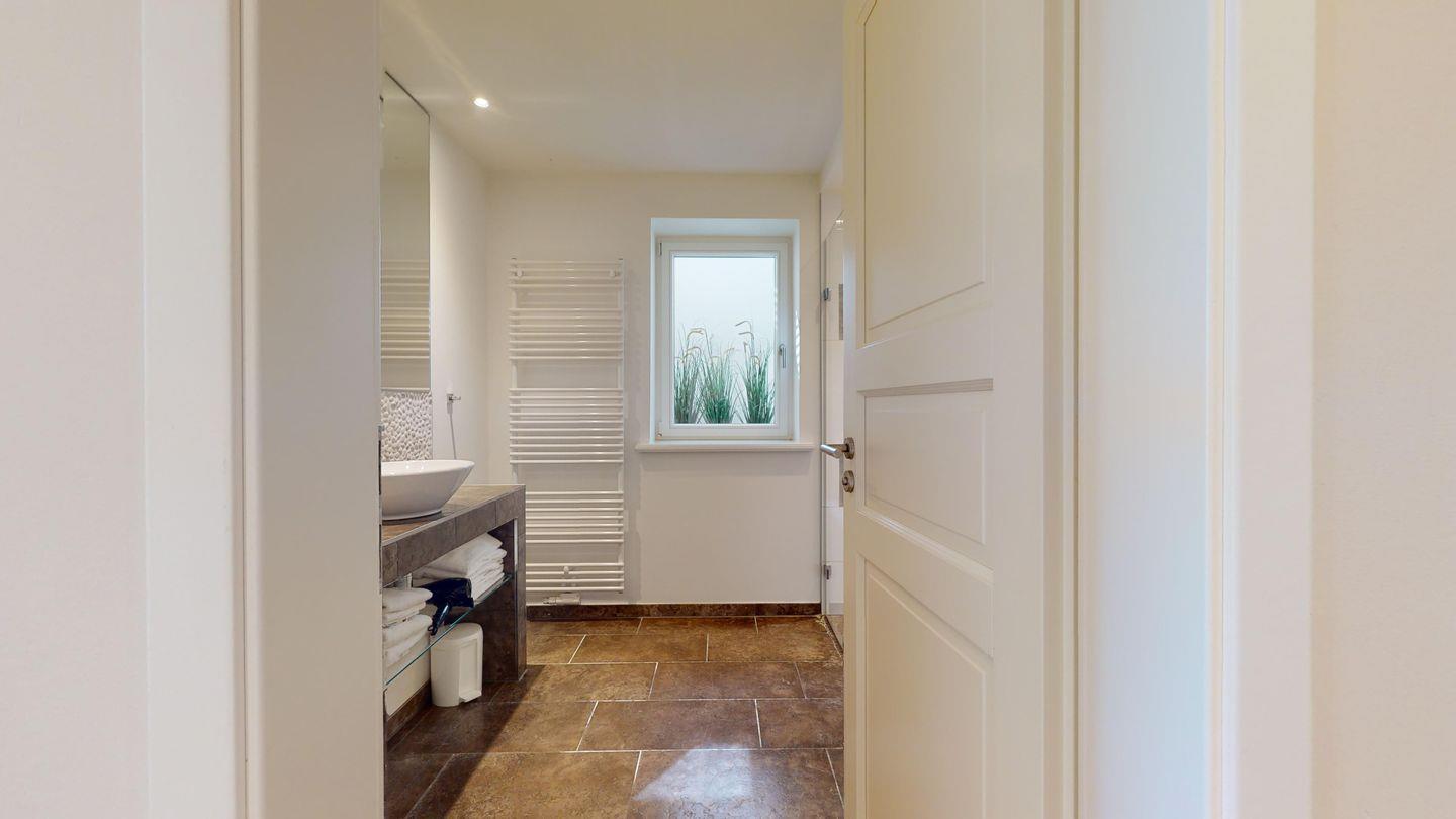 Das Badezimmer ist großzügig gestaltet und bietet Ihnen eine geräumige Dusche, die Erfrischung und Entspannung verspricht. Hier können Sie sich nach einem Tag am Strand oder einer ausgiebigen Erkundungstour erfrischen und revitalisieren.