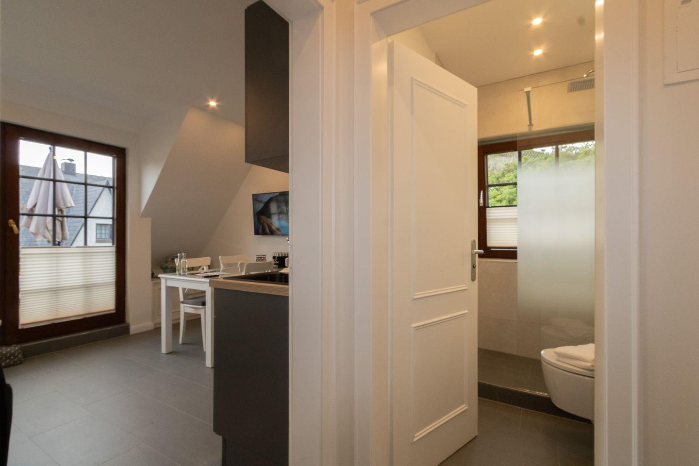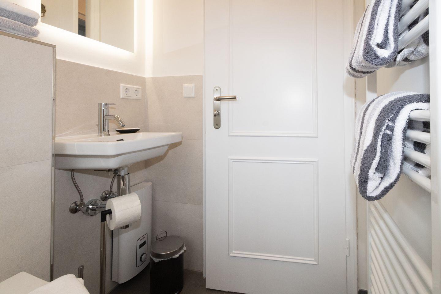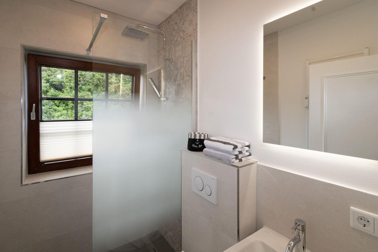 Ein weiteres Highlight der Wohnung ist das Badezimmer, das mit einer Dusche ausgestattet ist und durch Fußbodenheizung zusätzlichen Komfort bietet. Für weiteren Komfort sorgen eine Waschmaschine und ein Trockner, die Gemeinschaftlich genutzt werden können (im Nebenhaus).