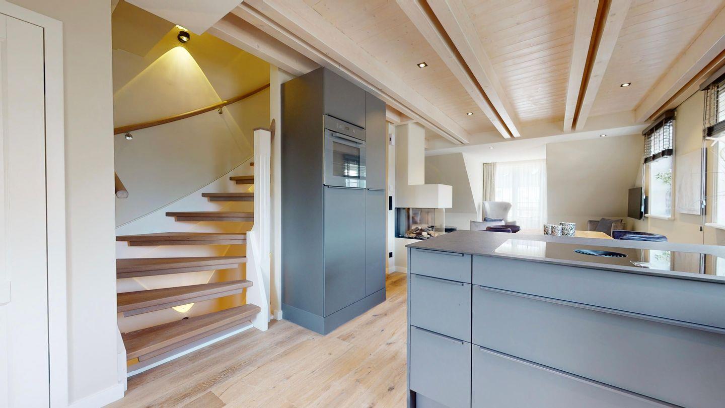 Die offene, voll ausgestattete Küche lässt keine Wünsche offen: Induktionsherd, Backofen, Spülmaschine, Kühlschrank sowie sämtliches Geschirr und Küchenzubehör stehen Ihnen zur Verfügung – inklusive Kaffeemaschine für einen gelungenen Start in den Tag.