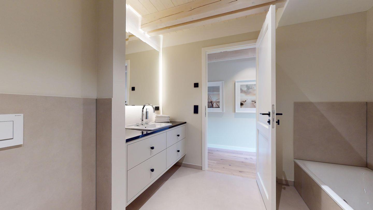 Die modernen Badezimmer bieten höchsten Komfort mit bodengleichen Duschen, einer Badewanne, Haartrocknern und Handtüchern.
