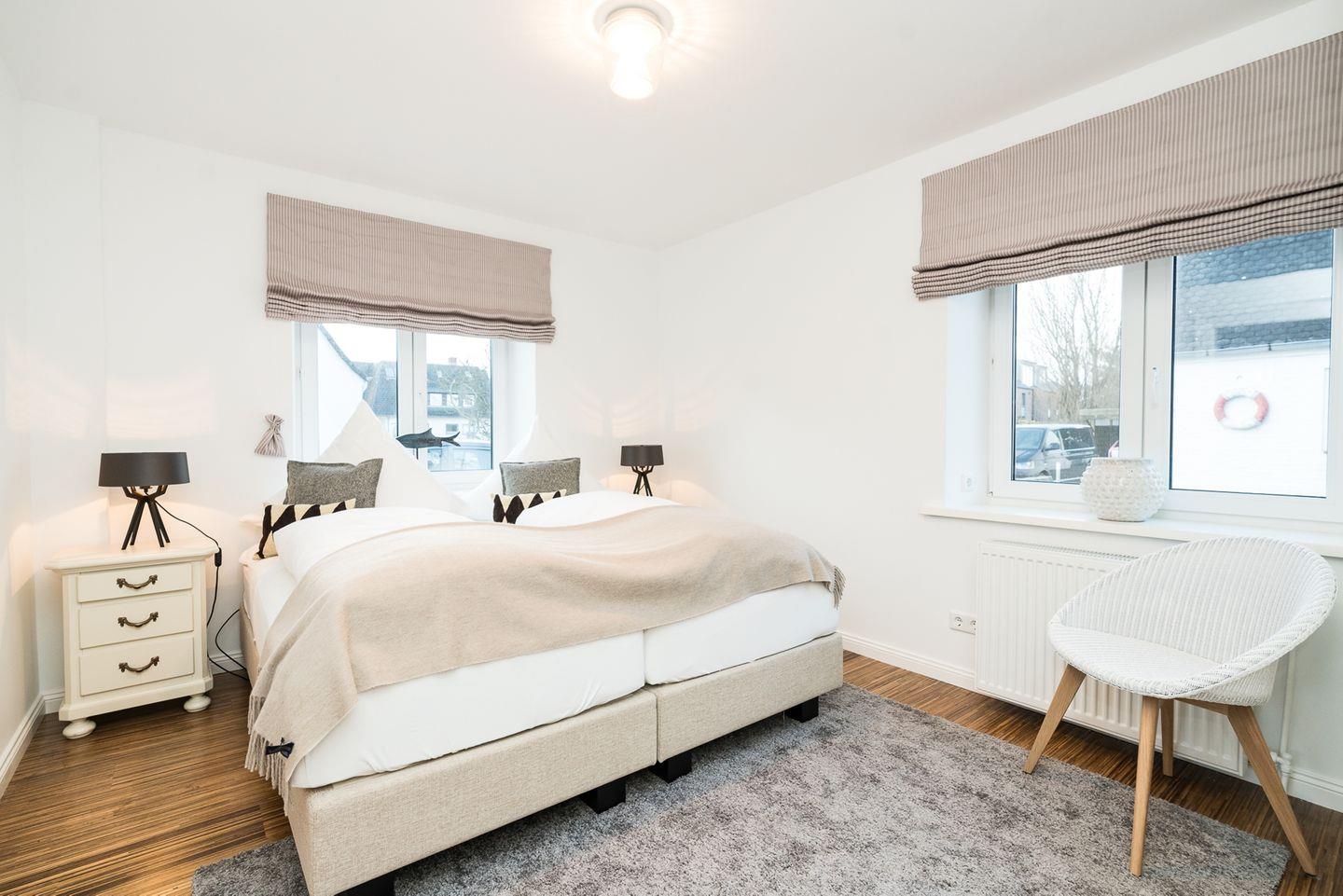 Erdgeschoss: Komfortables Schlafzimmer mit hochwertigem Boxspringbett in Hotelqualität – für erholsame Nächte und entspannte Morgen.