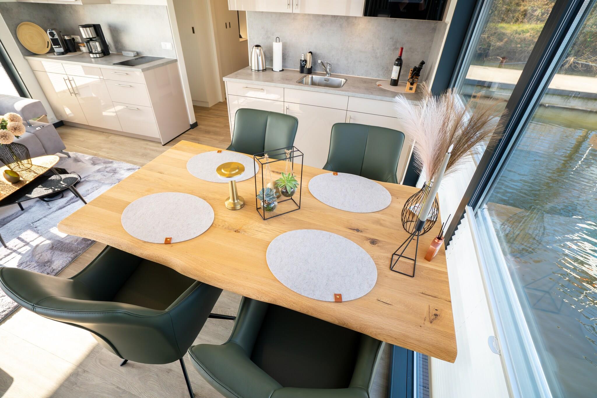 Å rømme fra hverdagen kan være så enkelt! Fast forankret på bølgene tilbyr husbåten alt ditt hjerte begjærer med et fullt utstyrt boareal av høy kvalitet (44 m²) og to solterrasser (40 m²). I et av de vakreste ferieområdene i Nordrhein-Westfalen, Weserbergland, venter en ferie i et luksuriøst innredet flytende hus. Å bo på vannet og nyte den fantastiske utsikten vil sikre ren avslapning etter bare noen få timer, og du vil nesten ikke forlate feriehuset. Soverommet og oppholdsrommene er stilfullt innredet. De to separate soverommene med dobbeltsenger, det fullt utstyrte kjøkkenet og det moderne dusjrommet med separat toalett tilbyr alle bekvemmeligheter som garanterer en avslappende ferie. Slapp nå av på terrassen eller på soldekket med vakker og beroligende utsikt over innsjøen og nyt tiden din! Høydepunkter inkludert: sluttrengjøring, vaskeripakke, alle forbruksavhengige energikostnader, Wi-Fi, parkeringsplass