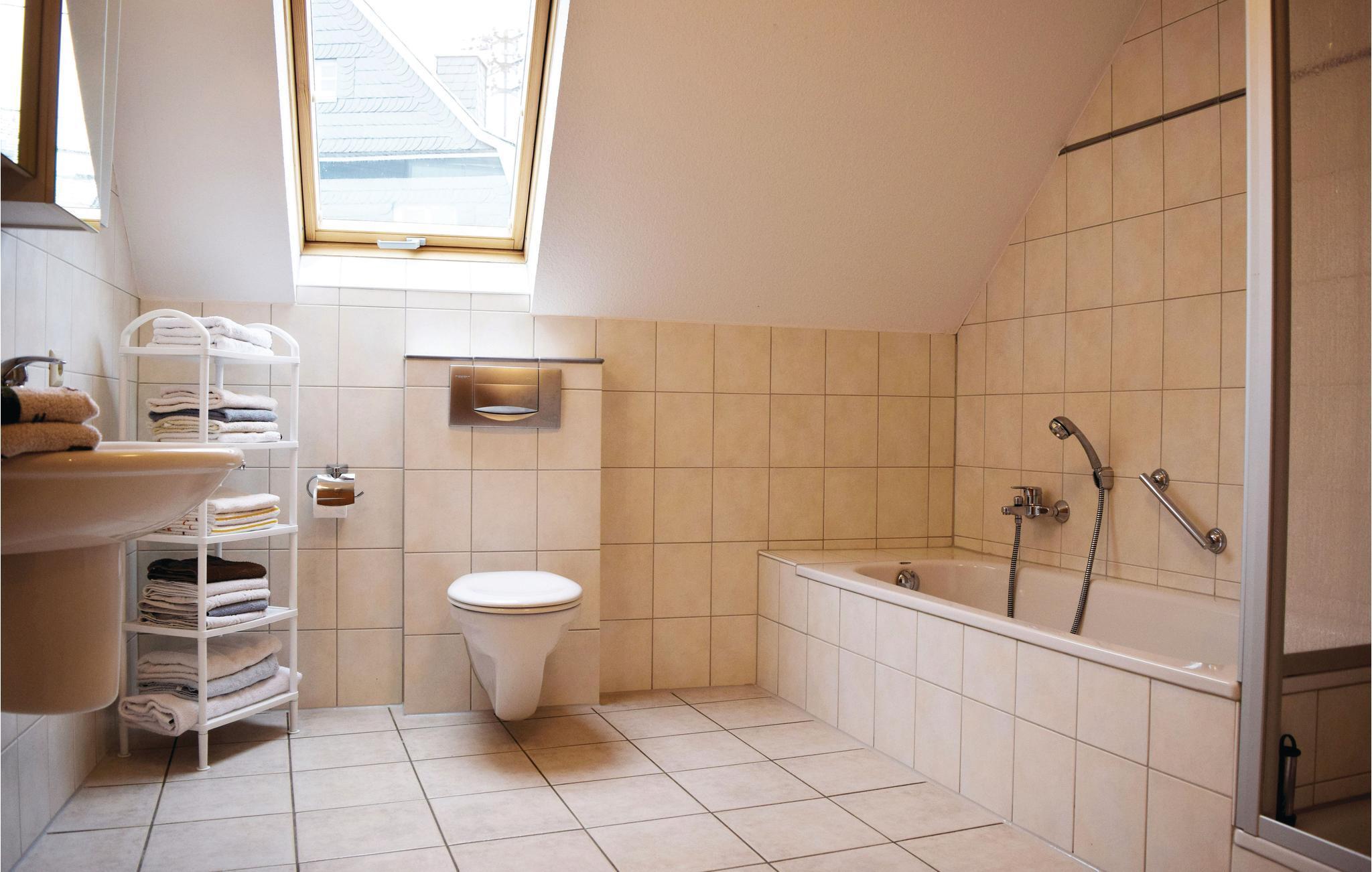 Innredningen er smakfullt tilpasset den historiske bygningsmassen. I dette feriehuset finner du nok plass til alle reisende. Du kan parkere bilen rett foran huset og gå inn gjennom et lite inngangsparti via en trapp inn i den romslige åpne stue- og spisestuen. Herfra har du direkte utsikt over deler av Hachenburgs historiske gamleby.