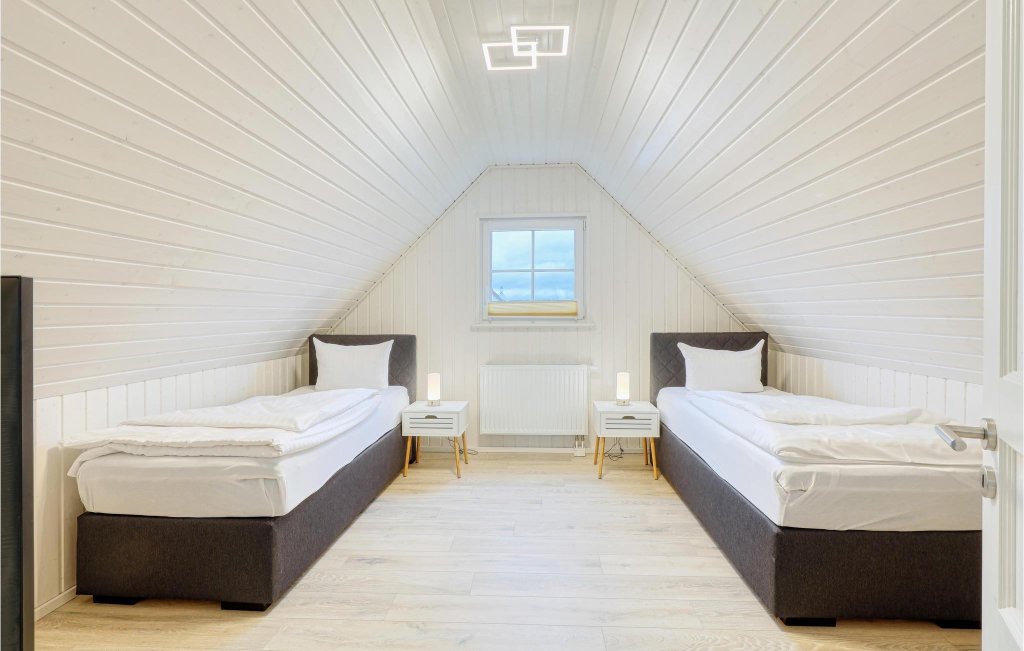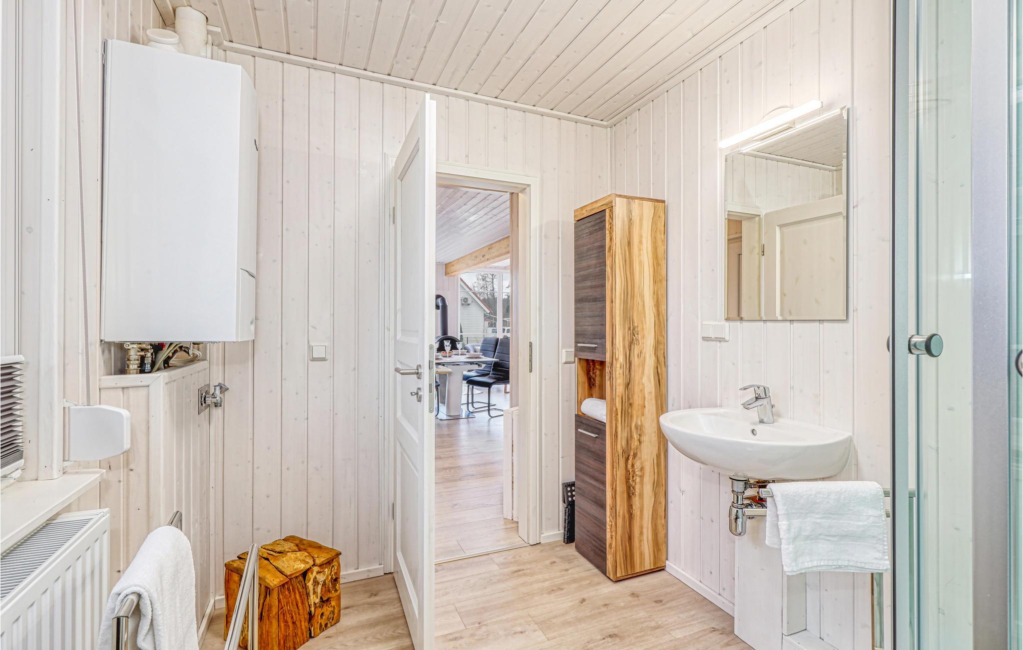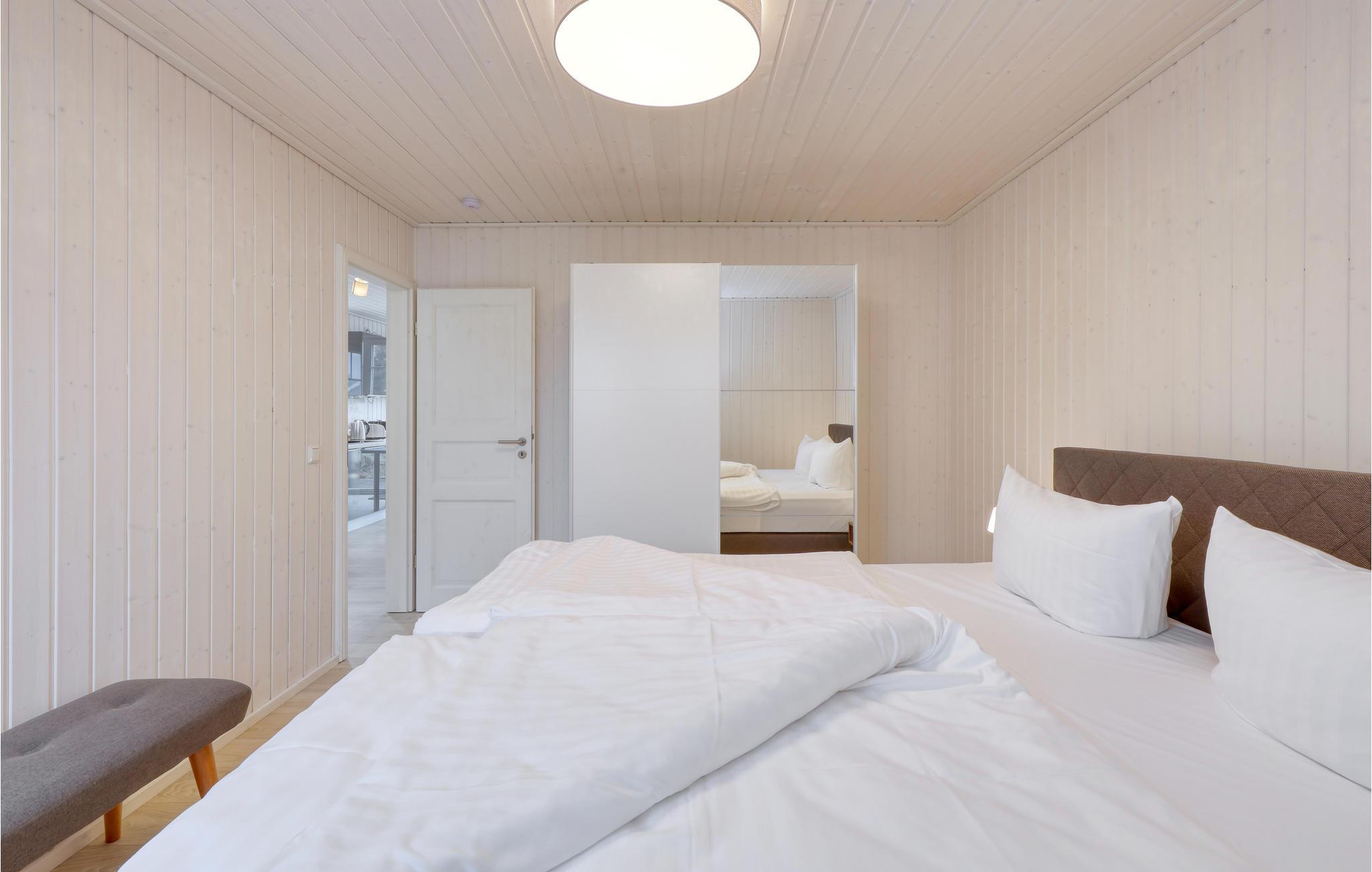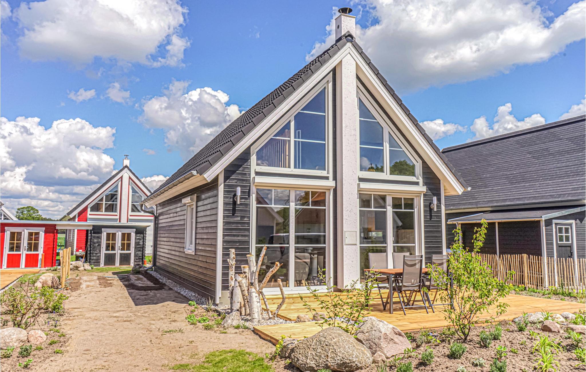 Selv om vinteren er havnelandsbyen Zerpenschleuse alltid verdt et besøk. I feriehuset kan du varme deg opp igjen foran den koselige knitrende ovnen i stuen etter en tur langs den isete innsjøen eller gjennom den snødekte skogen. Du kan også slappe av i velværedusjen i det romslige badet i første etasje. Du kan trygt oppbevare syklene dine i hageskuret. Ved siden av ligger huset DBB453, ideelt hvis du vil tilbringe ferien som en gruppe eller med flere familier.