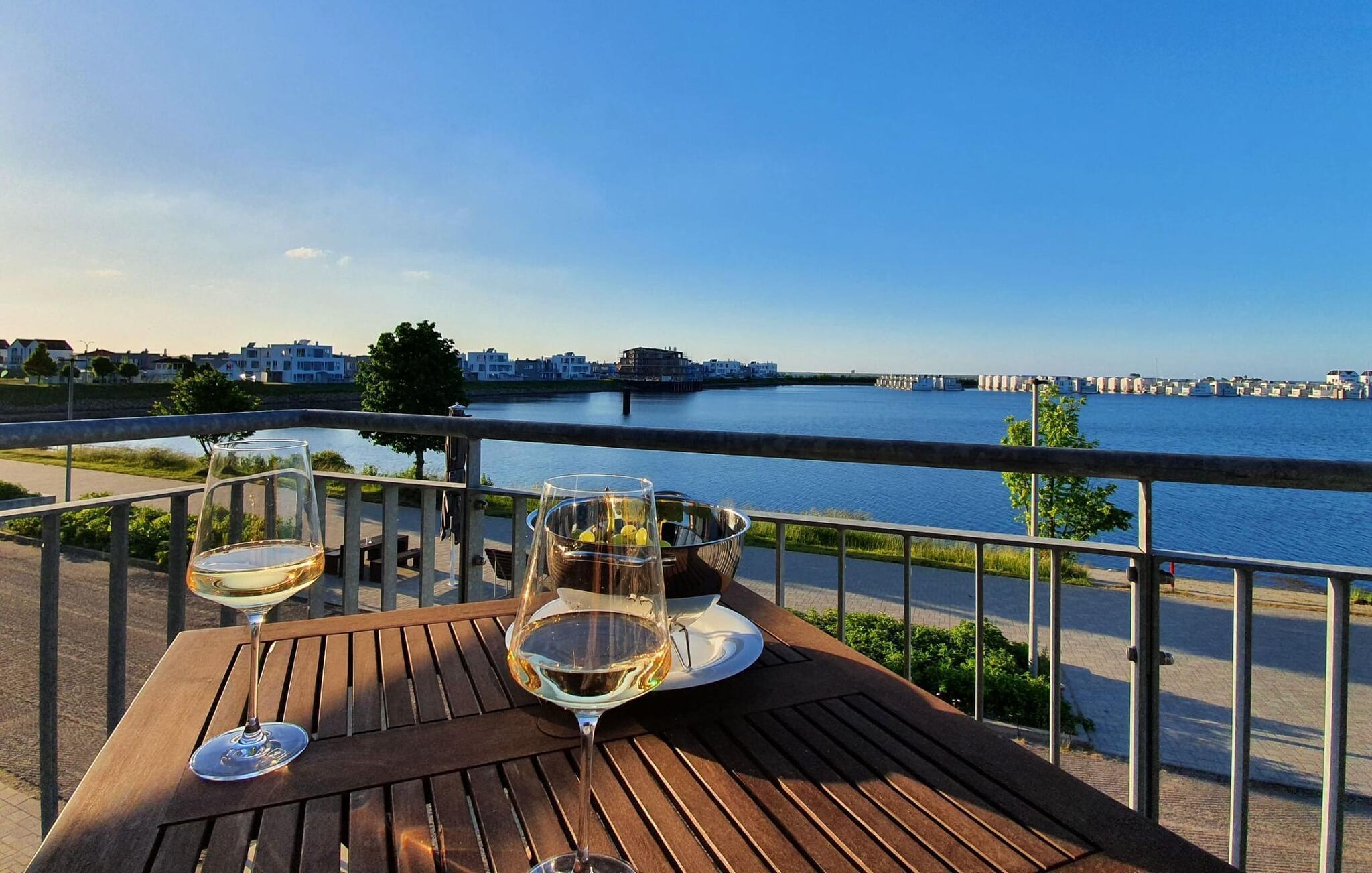 Et spesielt høydepunkt i HAFENTRÄUMCHEN er balkongen som strekker seg over hele leilighetens bredde og vender ut mot havnen. Her kan du sitte komfortabelt i de stilfulle utemøblene og nyte vakre soloppganger over Østersjøen om sommeren eller solnedganger over Schlei, nyte villgjessenes flygeoppvisning om våren og høsten og nyte panoramautsikten over den store, tidligere marinehavnen når som helst på året.