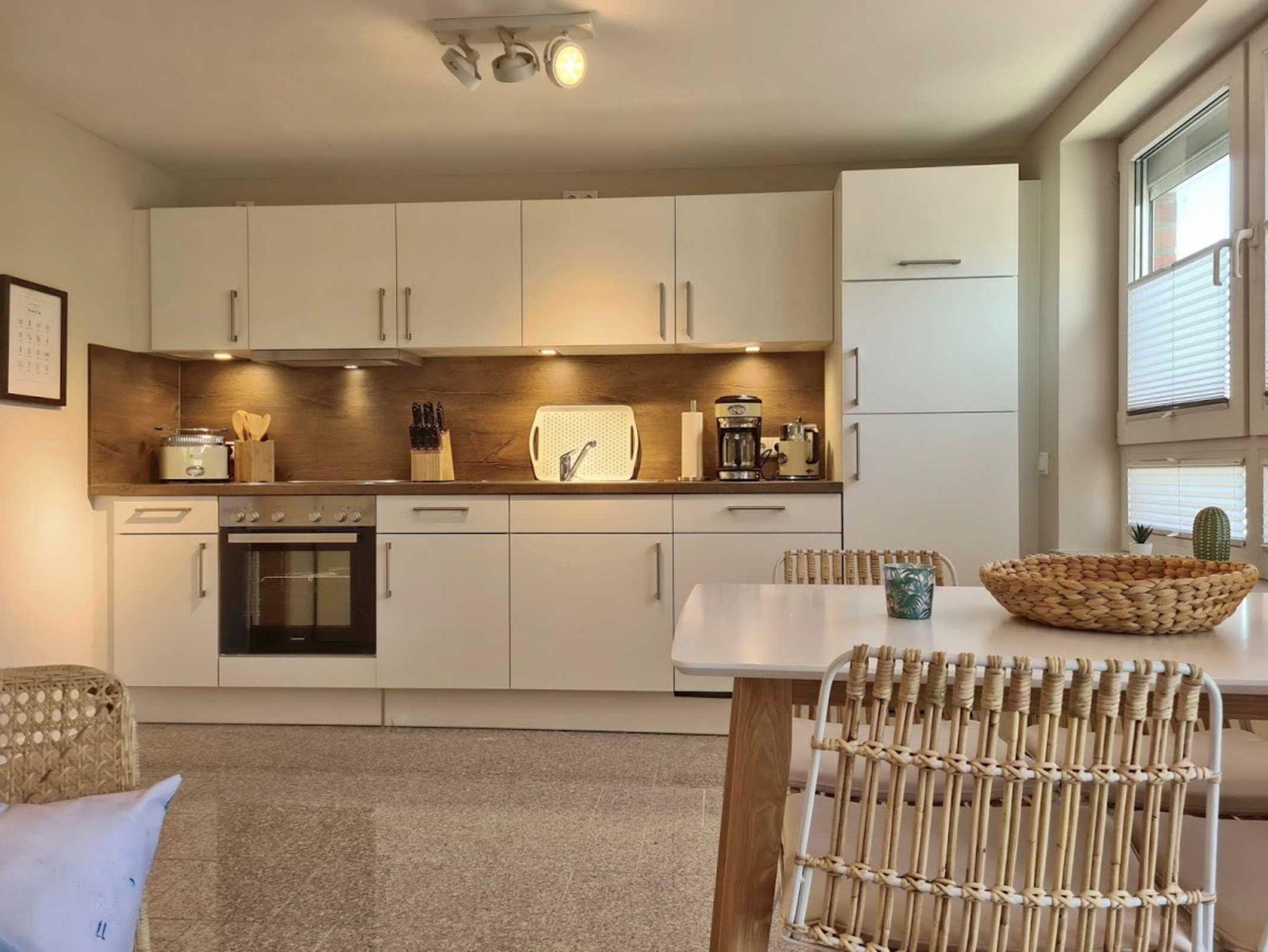 Die neue Inneneinrichtung der Wohnung besticht durch ein modernes Design im Surfer-Stile. In den beiden Schlafzimmern befinden sich hochwertige Box-Springbetten. Die komplett eingerichtete Küche ist u.a. mit einem Ge-schirrspüler, Backofen, Toaster, Kaffeemaschine usw. ausgestattet. Eine innenliegende Sauna steht gegen eine geringe Gebühr (Münzzähler) zur alleinigen Benutzung zur Verfügung. Im Wohnzimmer und im Elternschlafzimmer können zwei moderne Smart-TV genutzt werden. Das WLAN ist kostenfrei. Zum Badestrand (mit Surfschule) sind es ca. 20 Meter. Der kleine Garten mit Süd-West-Terrasse ist mit einem Strandkorb und Terrassenmöbeln ausgestattet. Am Haus befindet sich ein eigener, kostenloser Parkplatz.