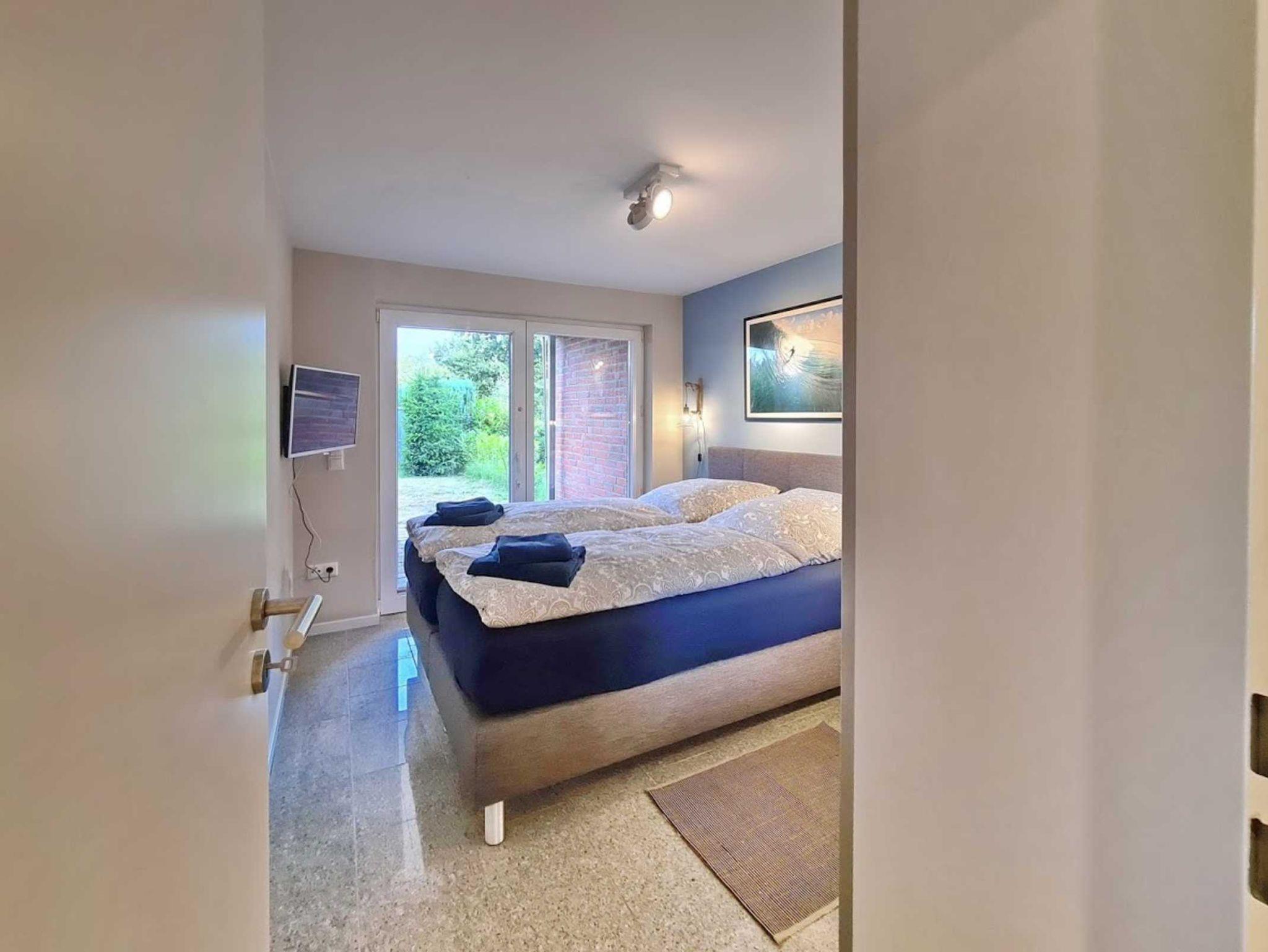 Die neue Inneneinrichtung der Wohnung besticht durch ein modernes Design im Sufer-Stile. In den beiden Schlafzimmern befinden sich hochwertige Box-Springbetten. Die komplett eingerichtete Küche ist u.a. mit einem Geschirrspüler, Backofen, Toaster, Kaffeemaschine usw. ausgestattet. Eine innenliegende Sauna steht gegen eine geringe Gebühr (Münzzäh-ler) zur alleinigen Benutzung zur Verfügung. Im Wohnzimmer und im Elternschlafzimmer können zwei moderne Smart-TV genutzt werden. Das WLAN ist kostenfrei. Zum Badestrand (mit Surfschule) sind es ca. 20 Meter. Der kleine Garten mit Süd-West-Terrasse ist mit einem Strandkorb und Terrassenmöbeln ausgestattet. Am Haus befindet sich ein eigener, kostenloser Parkplatz. Erdgeschoss-Wohnung mit Westterrasse, umzäuntes Grundstück, Fußbodenfliesen, Sauna, 1 Duschbad/WC, Design-Stil ?Surfer?