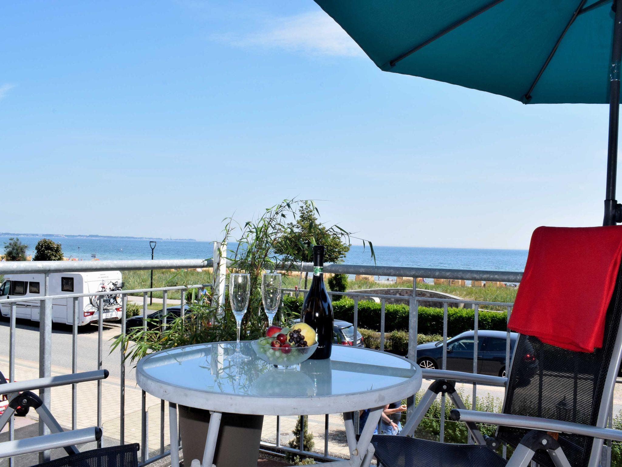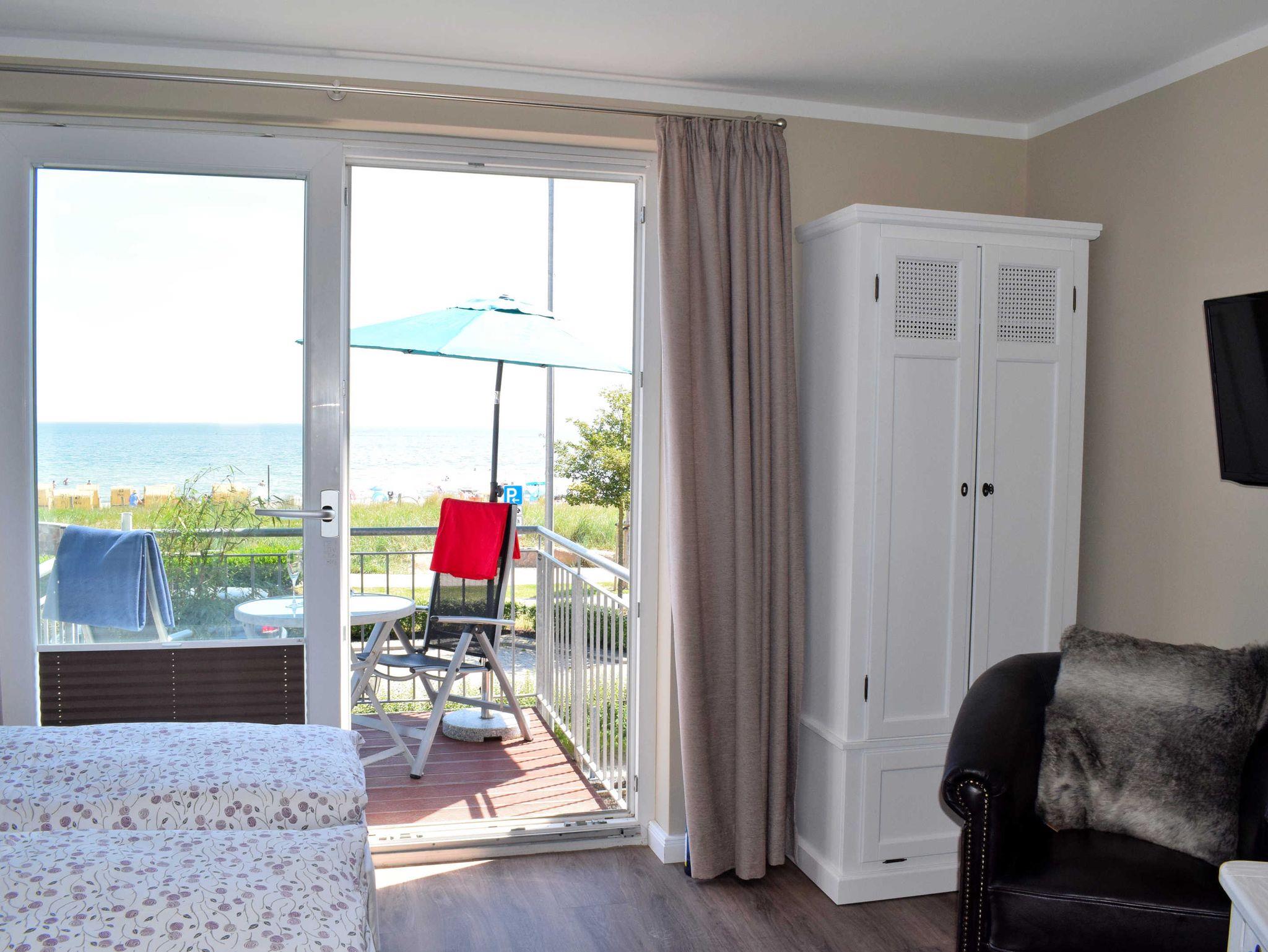 Hier treffen unsere Gäste auf ein Ein-Raum-Appartement mit direktem Meerblick in der 1. Etage. Ein Wohnschlafzimmer mit Balkon, eine Küche mit Essbereich und ein neues Duschbad/WC erwarten die Gäste in dieser gemütlichen Wohnung.
