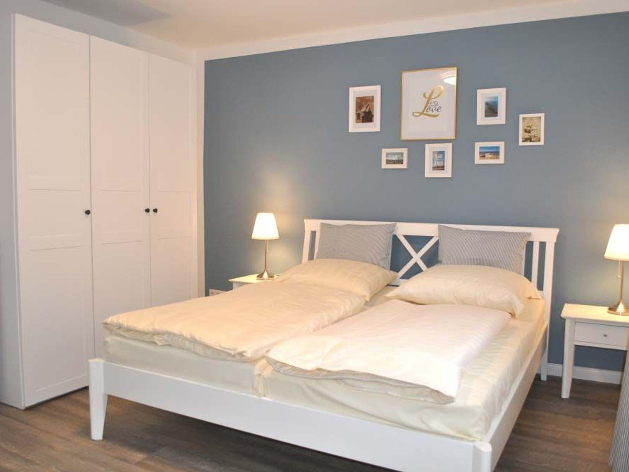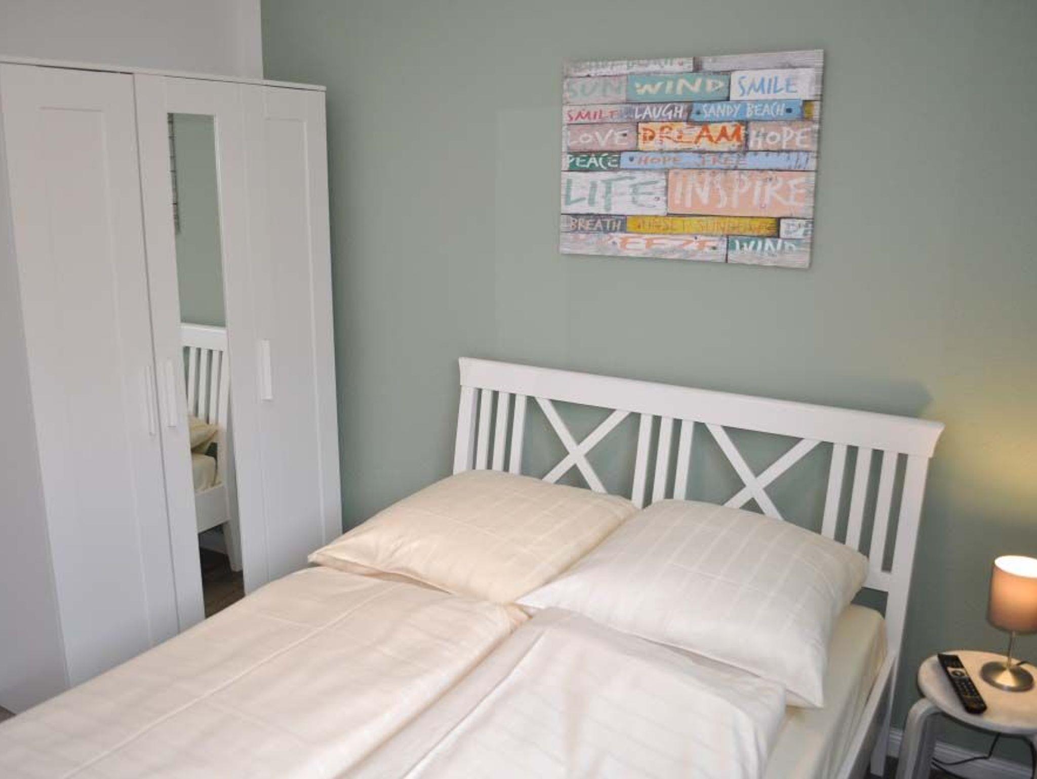 Schlafzimmer 2: 1 Matratze, Doppelbett 2,00 x 1,40 m, Flachbildschirm, Kabel-TV, Kleiderschrank mit Spiegel, Nachttisch, Stuhl, Verdunklungsrollo