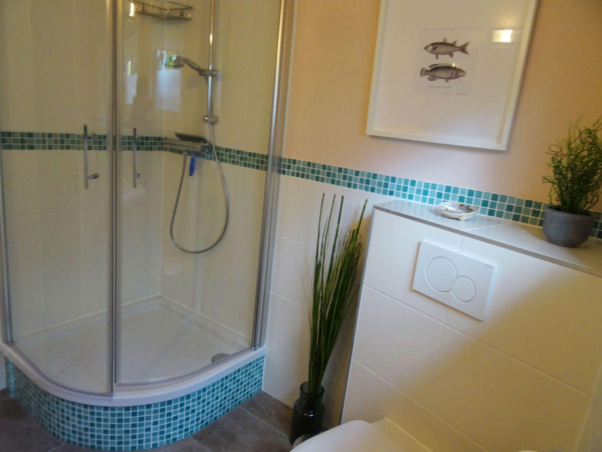 Für die Nicht-Leseratten steht ein 40 Zoll Kabel-TV und DVD Player sowie DAB+ Musikanlage bereit. Auch der kostenlose Highspeed W-Lan Anschluss wurde nicht vergessen. Direkt vom komfortablen Bett (160 cm breit) aus, hat man einen fantastischen Blick in den Garten. In unserer Kombüse, die wir mit allen notwendigen Utensilien für die Selbstversorgung ausgestattet haben, steht auch eine Senseo-Kaffeepad Maschine für den Kaffeegenuss zur Verfügung. Ein Herd mit Backofen und Induktionskochfeld, Kühlschrank mit Gefrierfach, Kaffeemaschine, Wasserkocher und Toaster sind hier außerdem zu nennen. Ein Essplatz für 2 Personen direkt am großen Fenster bietet Gelegenheit die Mahlzeiten natürlich auch hier einzunehmen. Ein modernes halbrundes Glas-Duschbad (0,90 x 0,90) mit Hänge-WC, Waschtisch mit 2 Schubladen und großem Spiegel, Föhn und Fenster runden das Gesamtbild ab.