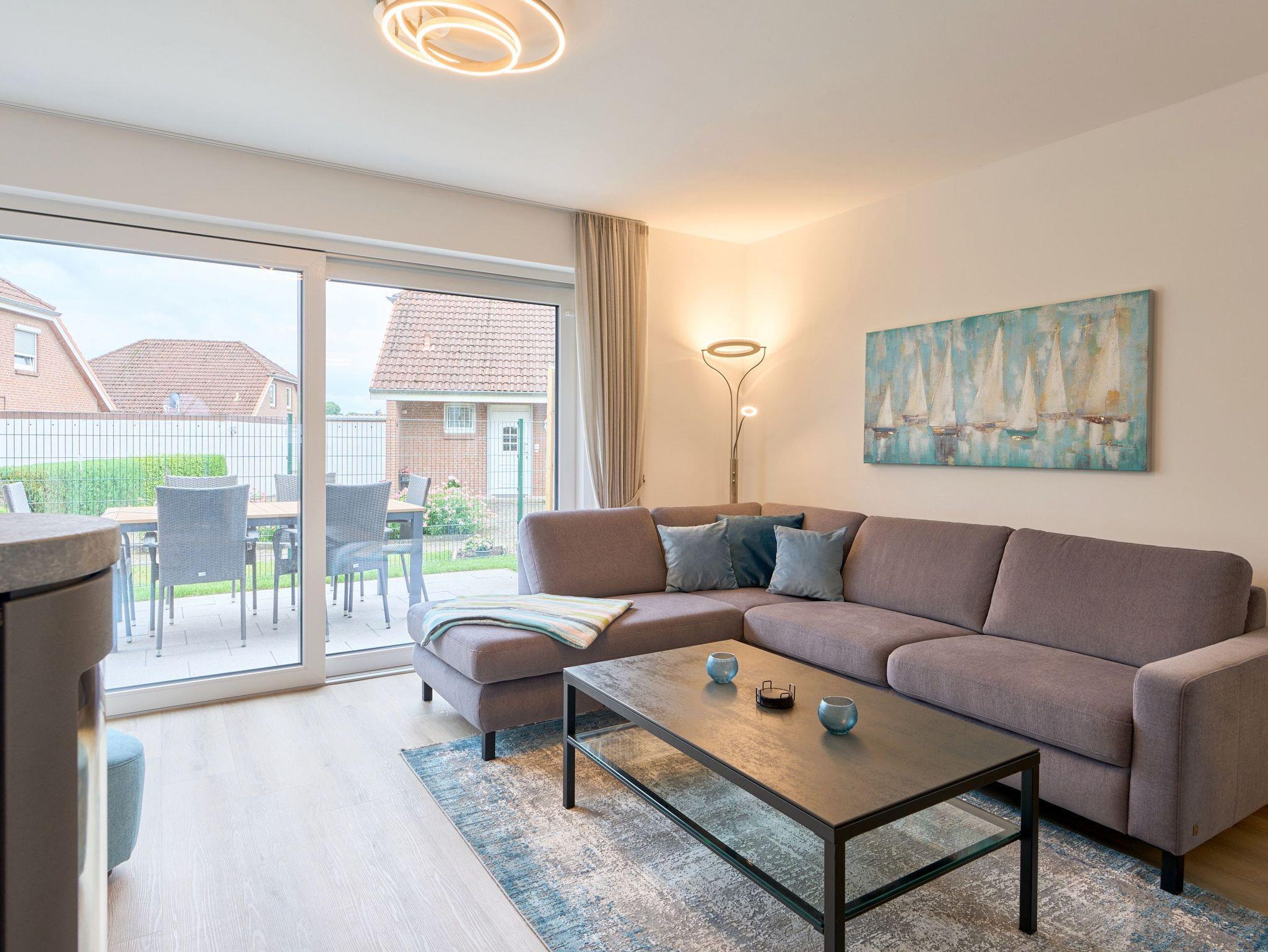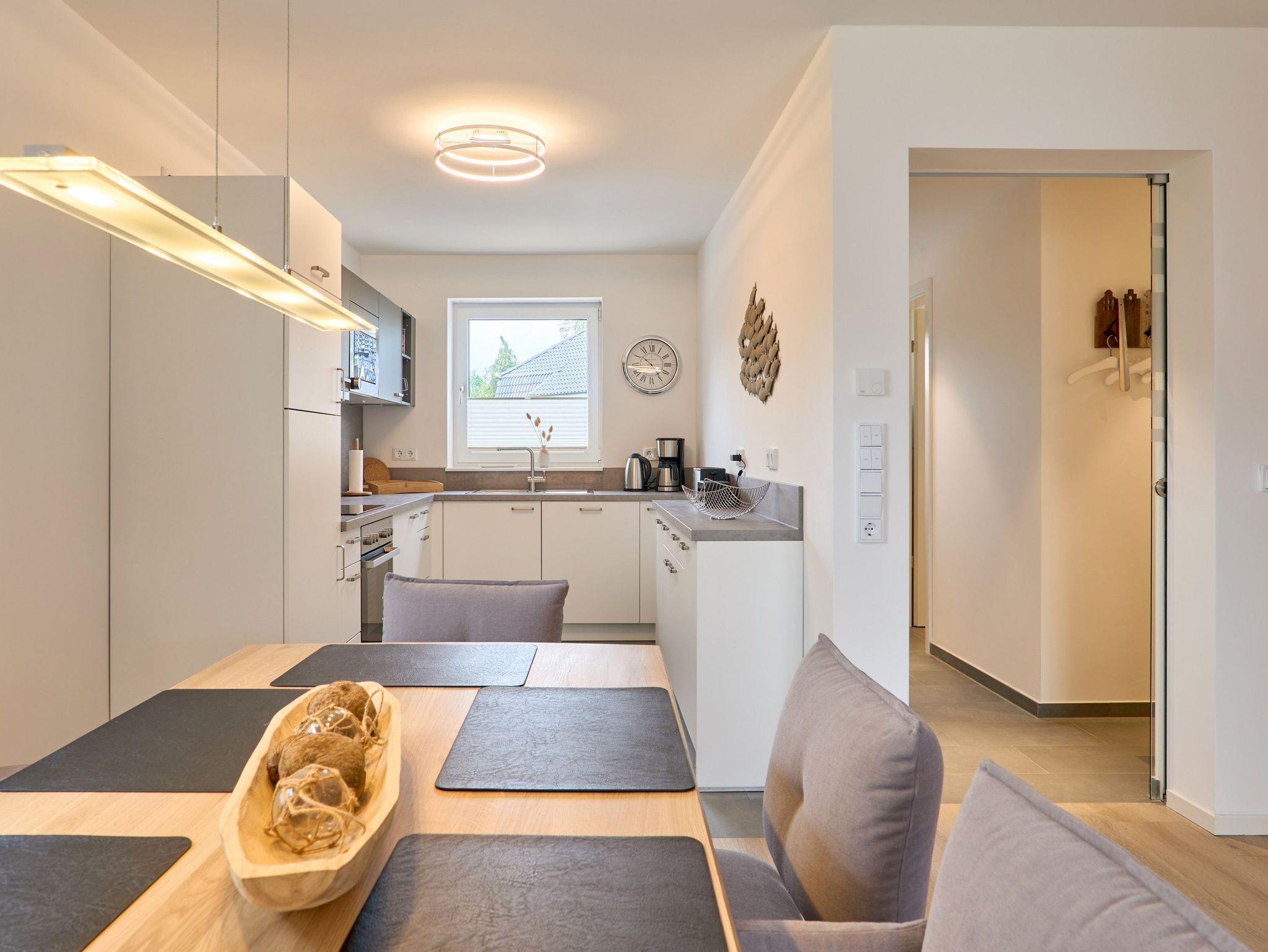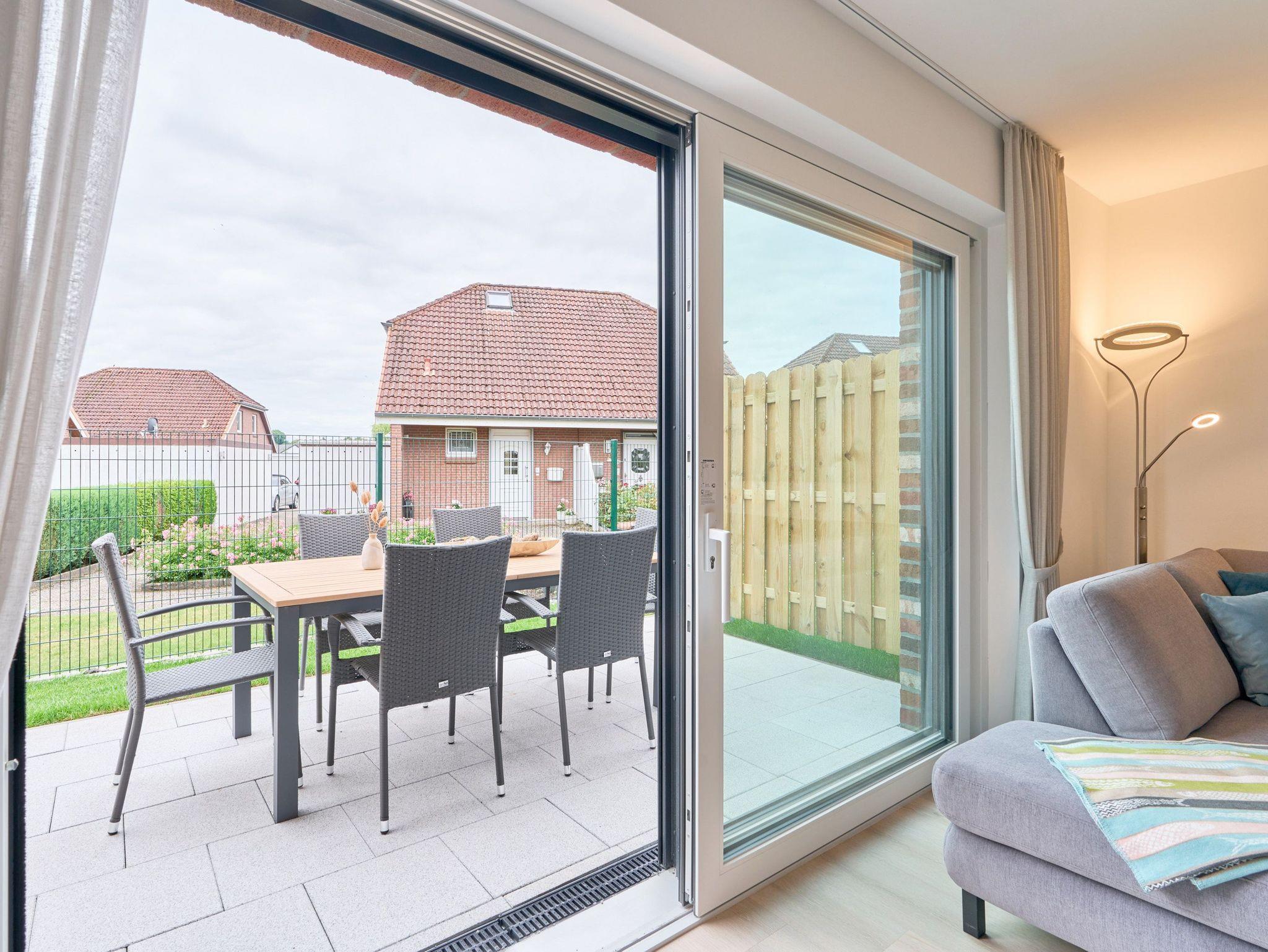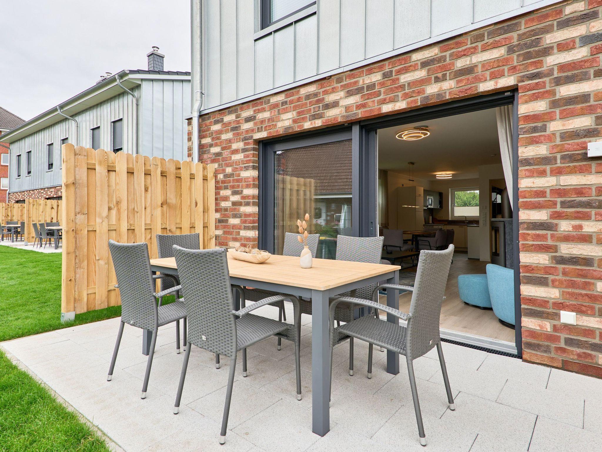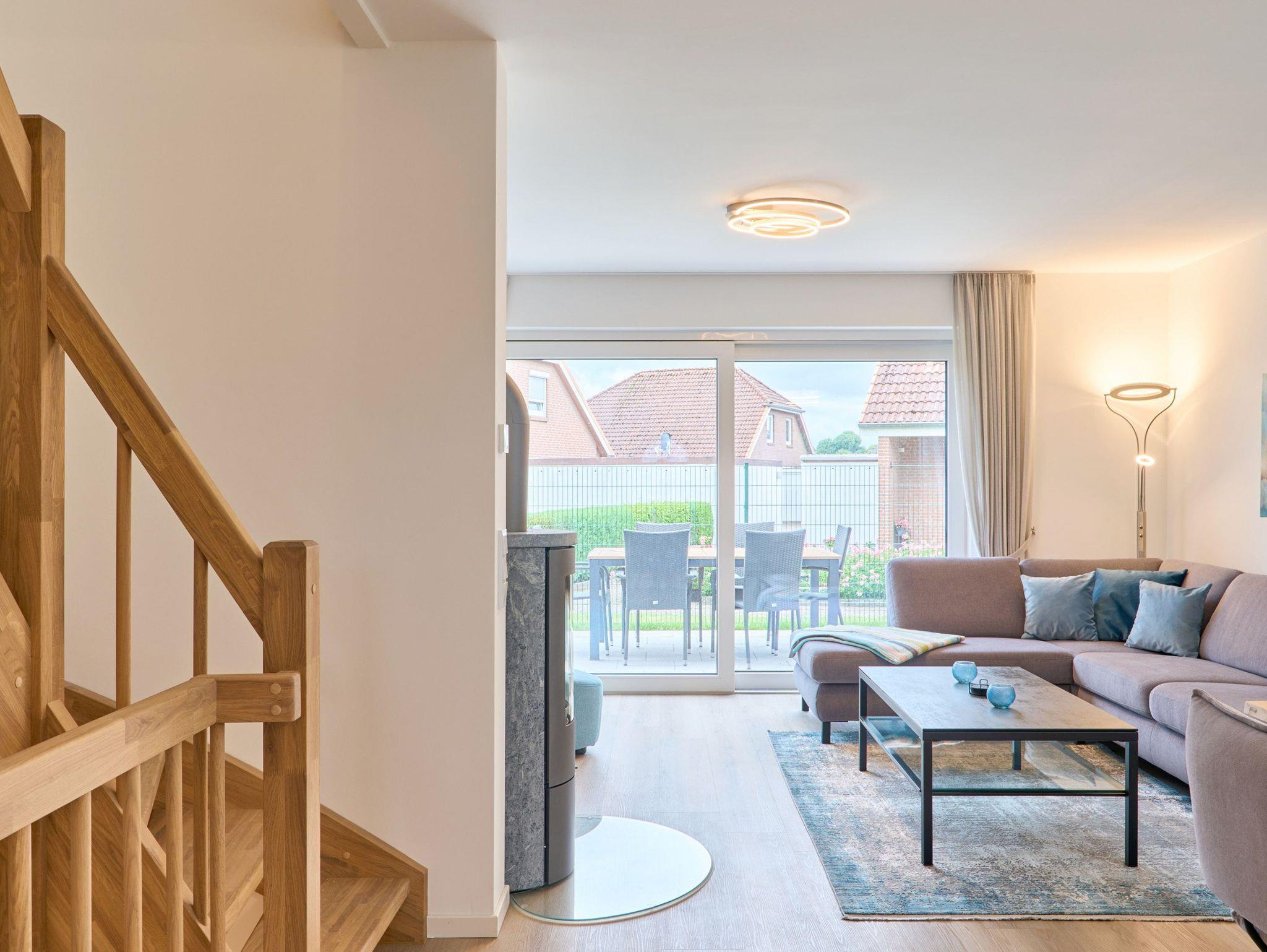 Endreihenhaus, ca. 100 m² auf zwei Ebenen, 3 Schlafzimmer, 2 Bäder, für bis zu 6 Personen, Südterrasse, Außenstellplatz mit E-Ladestation