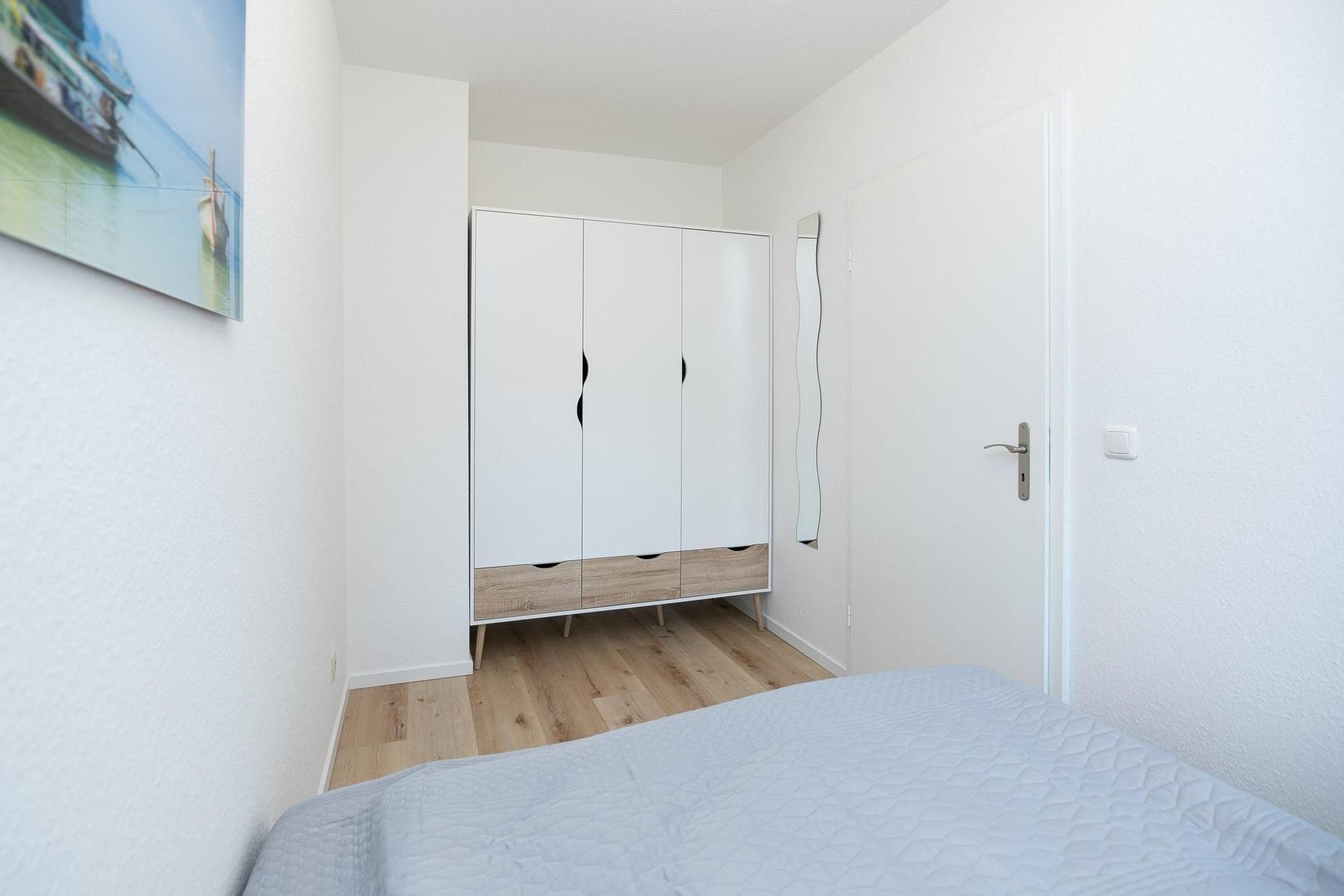 Schlafzimmer: 1 Doppelbett (2x 80x190 cm), Kleiderschrank.