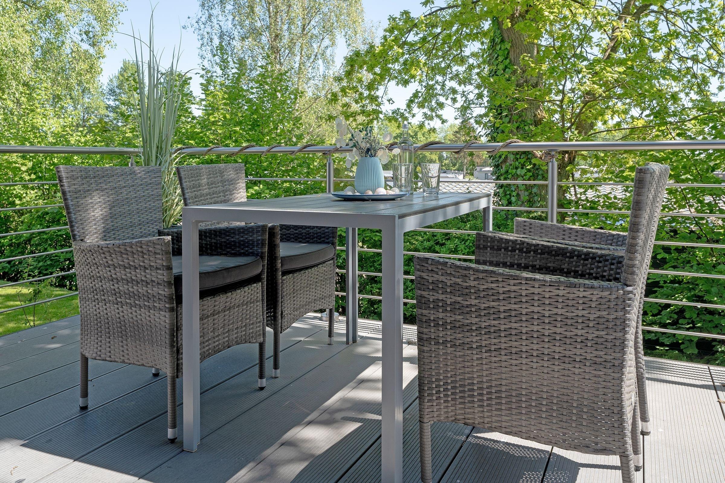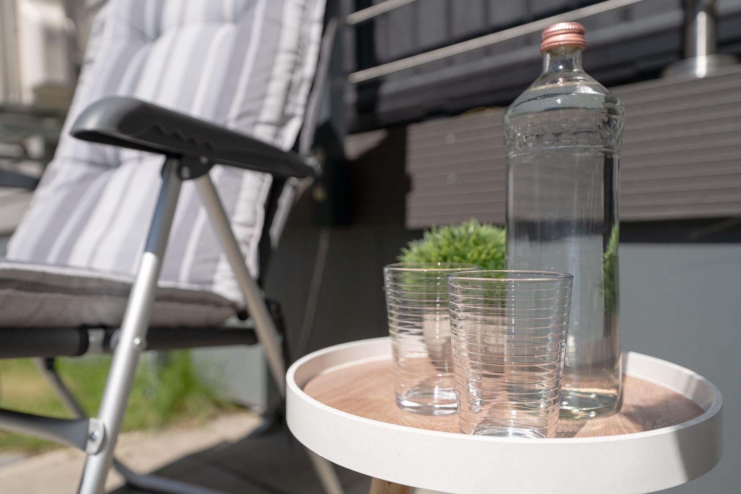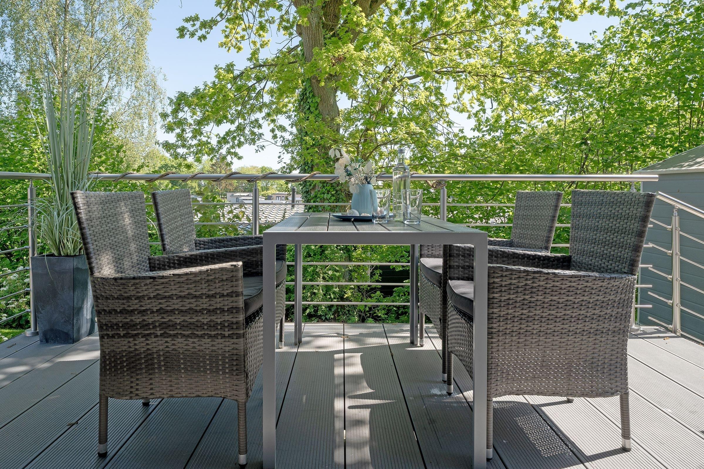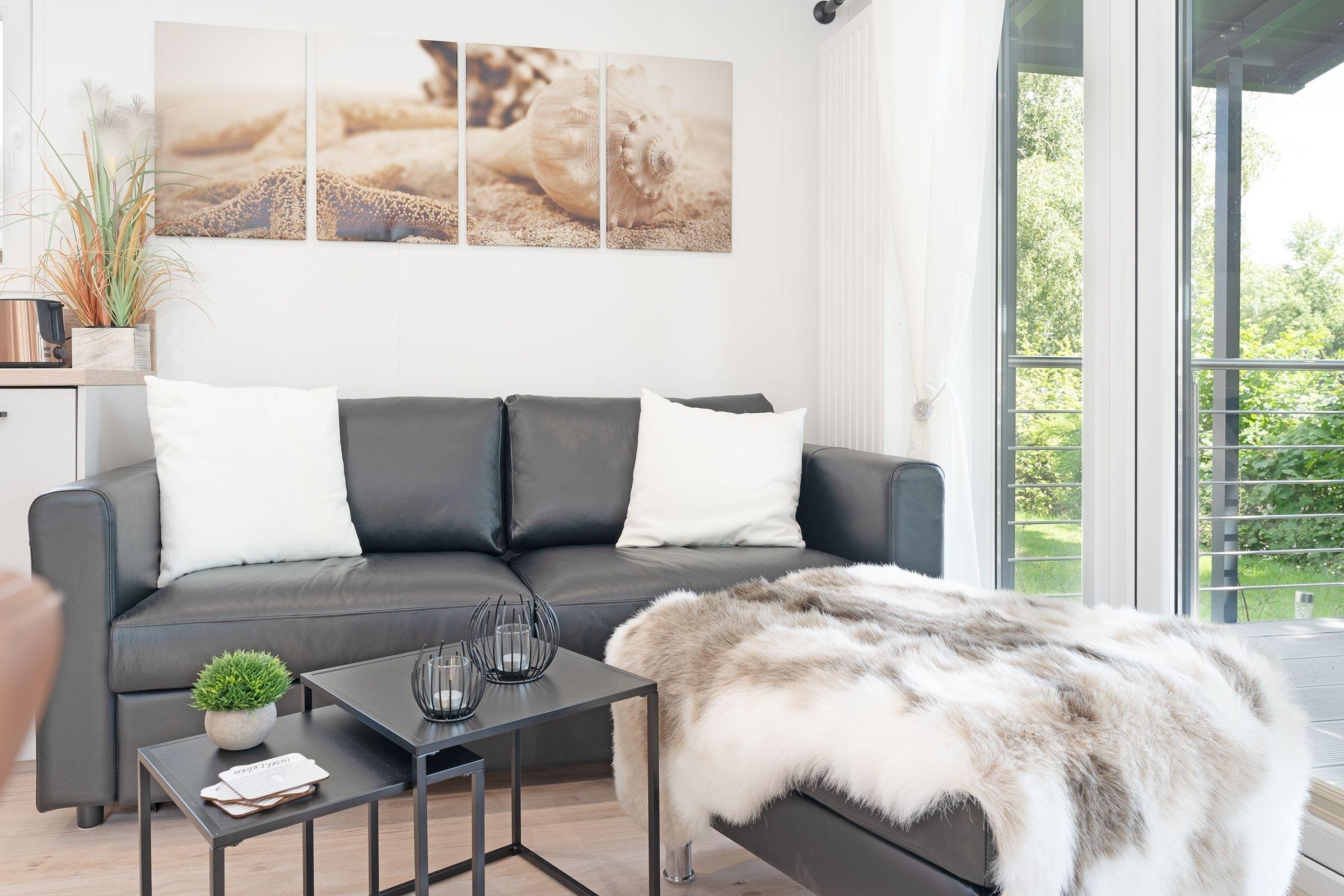 Der offene Wohnraum mit Sofa, Essplatz und Küche überzeugt durch seine geschmackvolle Einrichtung. Von hier aus gelangen Sie auf die gemütliche, teilüberdachte Terrasse, die besonders abends der perfekte Ort für einen stimmungsvollen Ausklang eines ereignisreichen Urlaubstages ist. Dieses Feriendomizil ist komplett umzäunt und ermöglicht auch Vier- und kleinen Zweibeinern einen entspannten Urlaub.