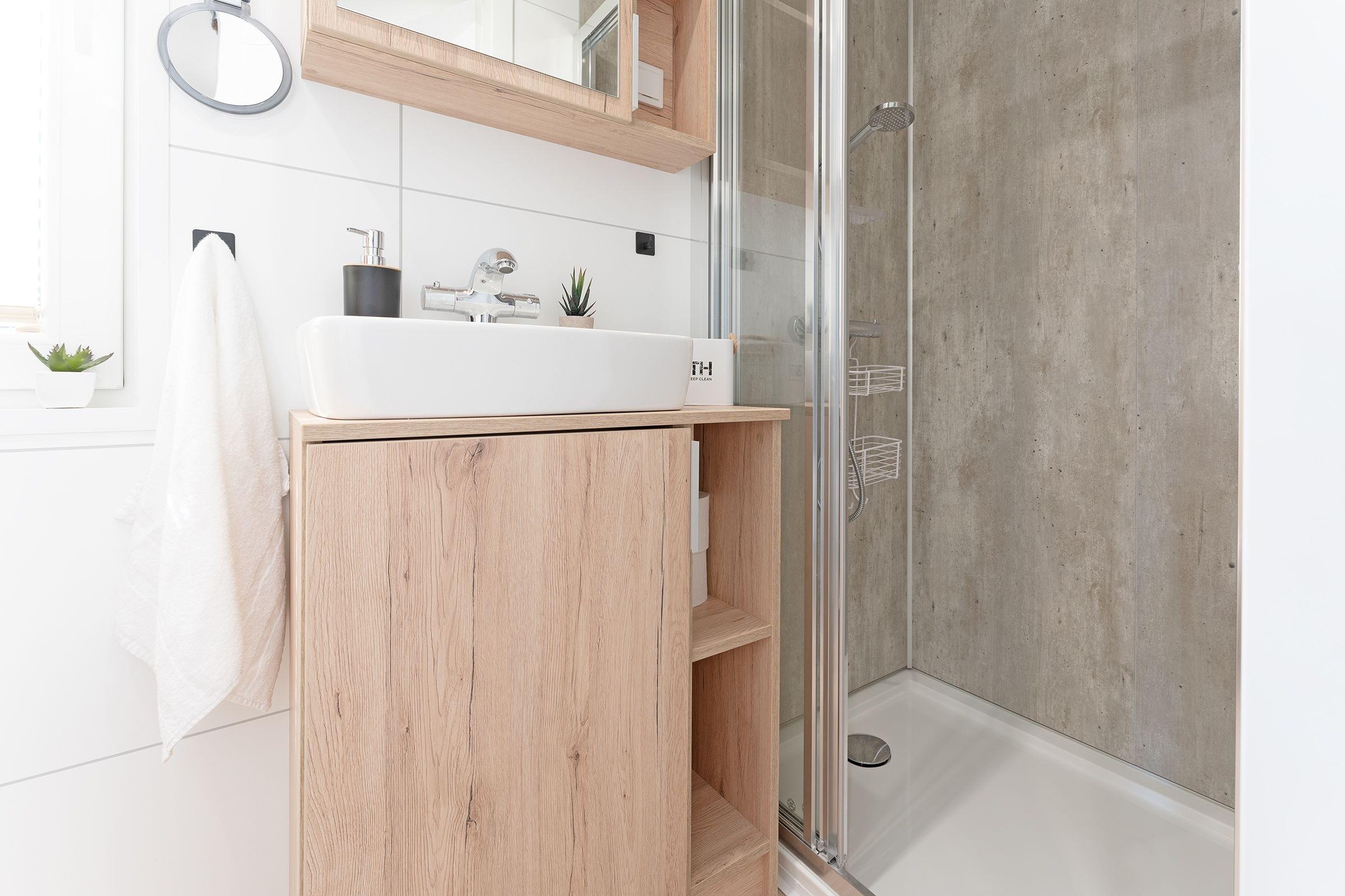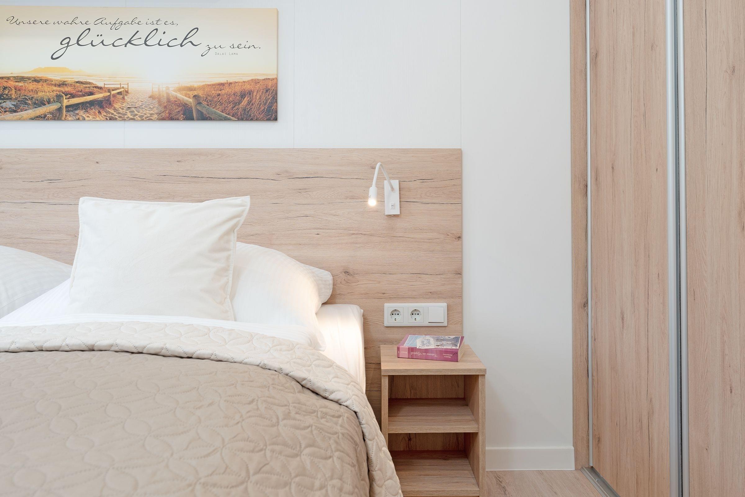 Die sehr gut ausgestattete Küche bietet eine schöne Alternative zur großen, bunten Auswahl an umliegenden Restaurants entlang der Ostsee. Ein separates Schlafzimmer mit Doppelbett und eigenem Smart TV sorgt für Ruhe und Entspannung. Ein weiteres Schlafzimmer mit zwei Einzelbetten, die bei Bedarf zusammengeschoben werden können, lädt ebenfalls zum Träumen ein. Für einen guten Start in den Tag komplettiert ein Tageslichtduschbad diese schöne Ferienunterkunft.