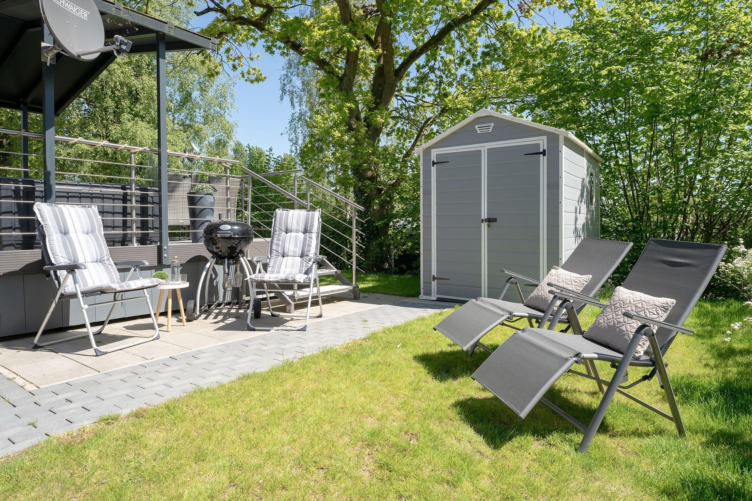 Ein PKW-Außenstellplatz ist für Sie reserviert. Mitgebrachte Fahrräder können in einem abschließbaren Fahrradraum untergebracht und über die Aussensteckdose aufgeladen werden. Im Ferienhauspark haben Sie die Möglichkeit eine Gemeinschaftswaschmaschine und -trockner zu nutzen (gegen Gebühr). Außerdem steht Ihnen ein Saunahaus zur Verfügung (gegen Gebühr).