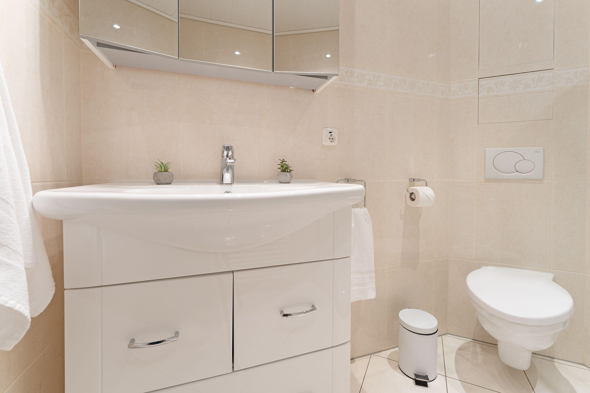 Ein PKW-Tiefgaragenstellplatz (Einfahrtshöhe: 1,80 m, Stellfläche: 4,97 x 2,17 m) ist für Sie reserviert. Fahrräder können ebenfalls hier abgestellt werden. Ein Kinderreisebett und ein Hochstuhl sind inklusive.