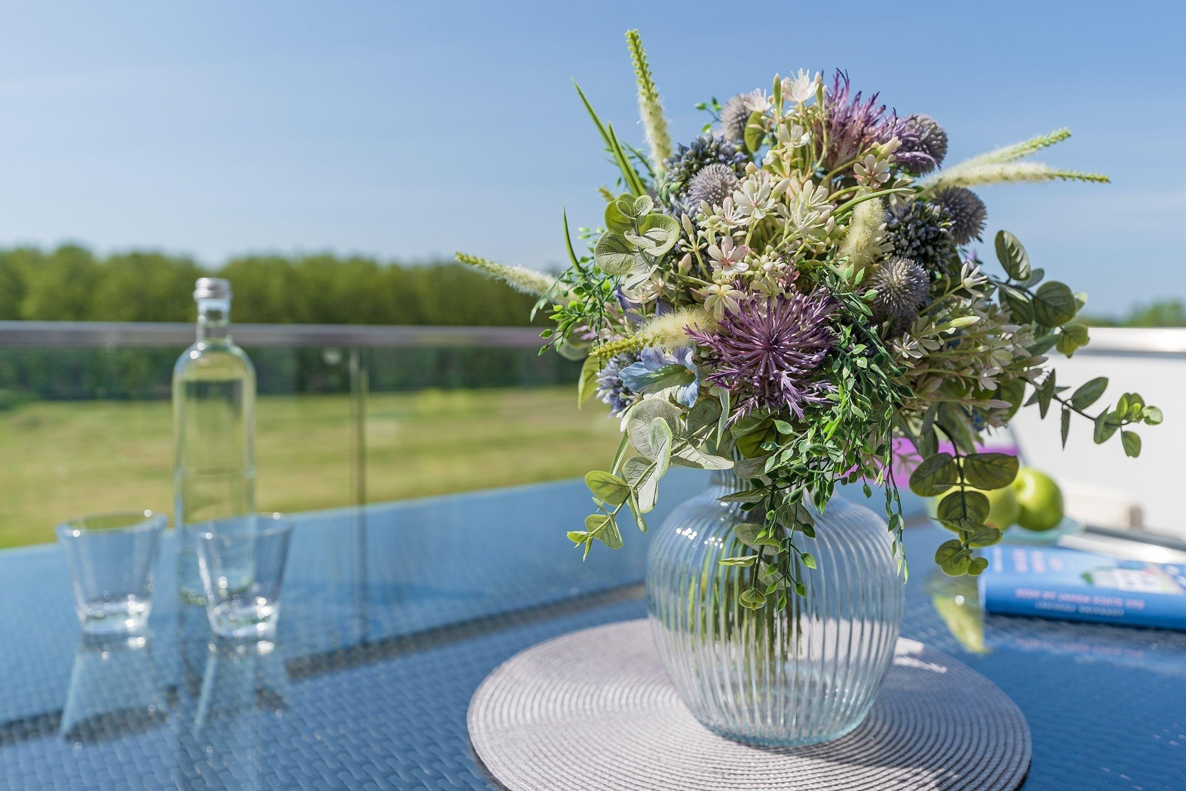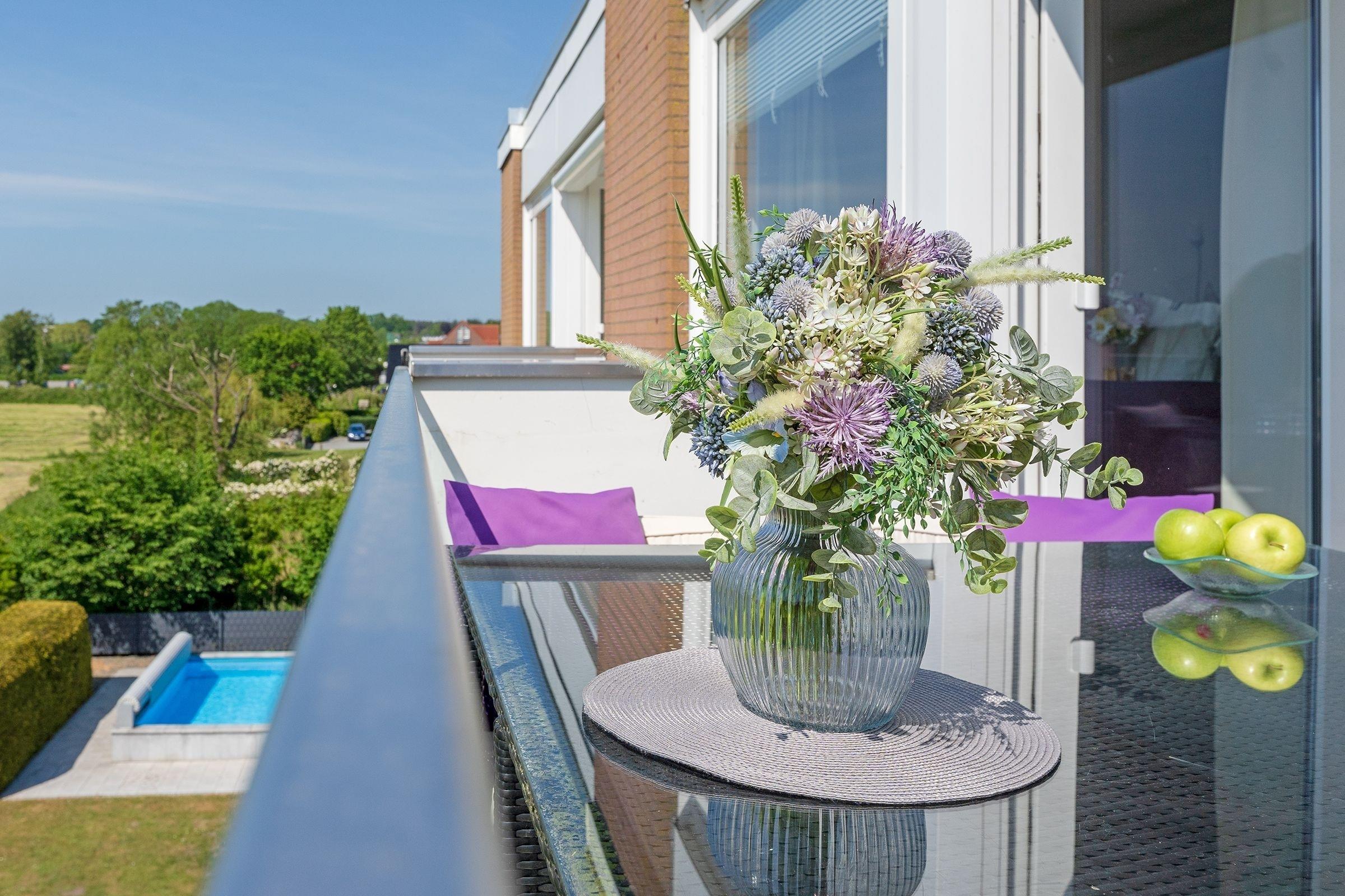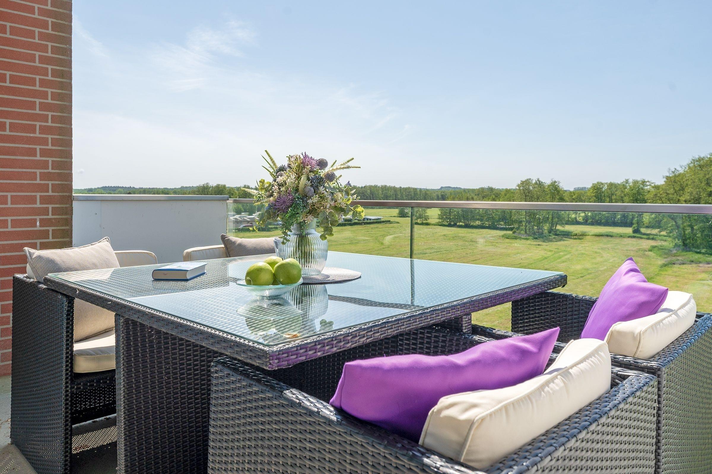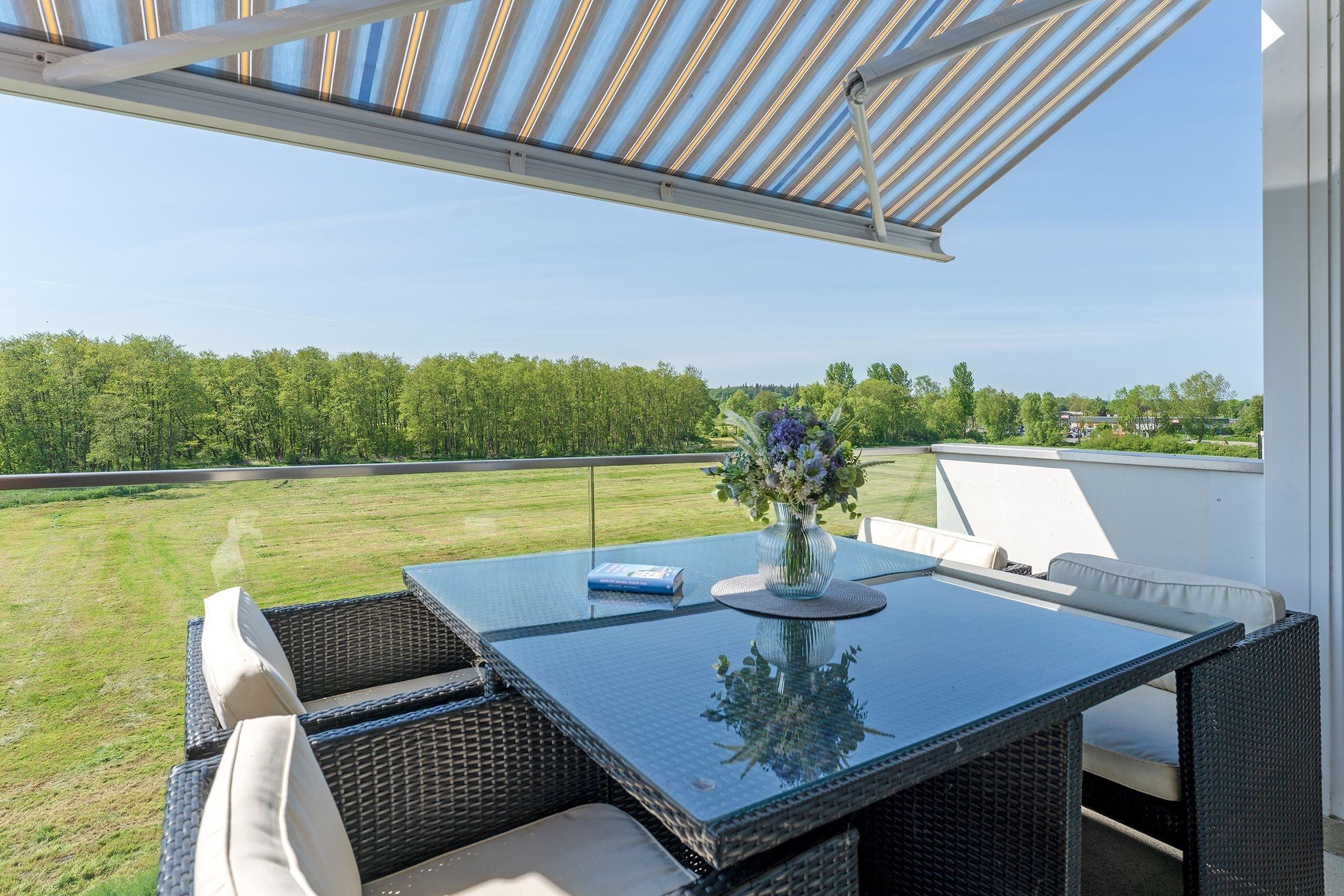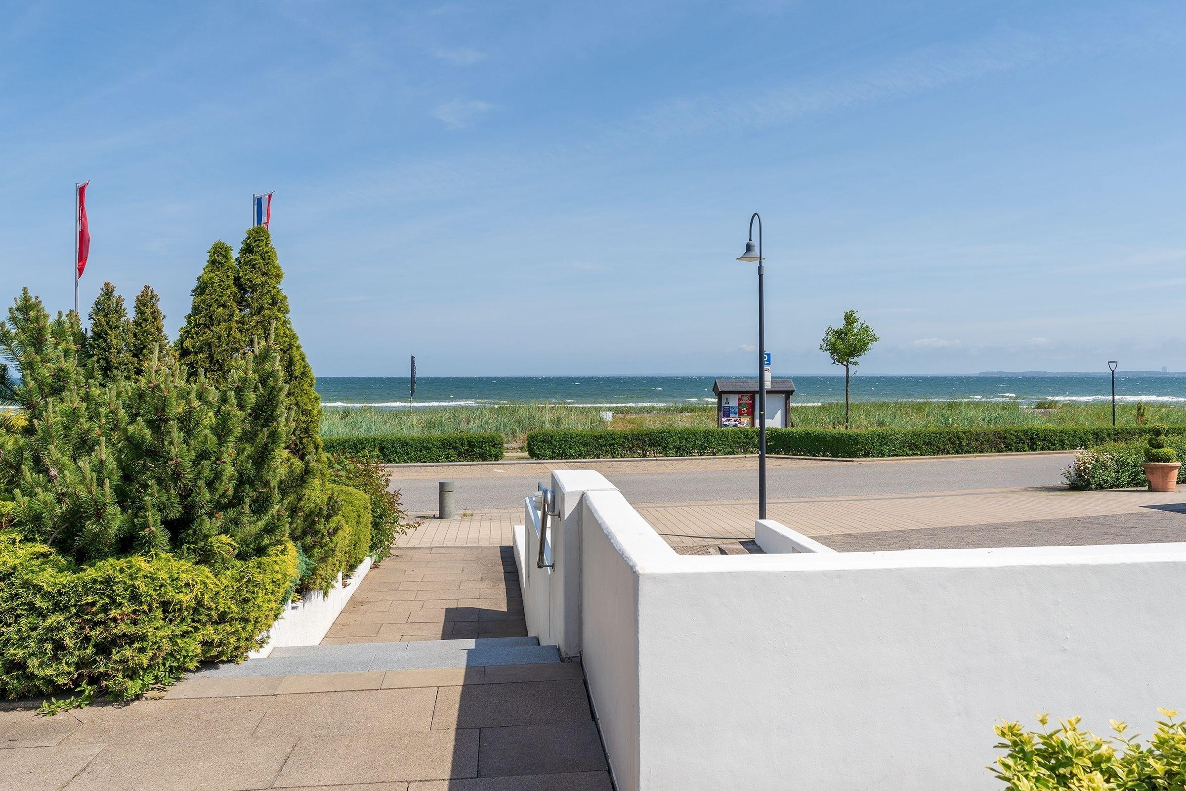 In exponierter Strandlage von Haffkrug: charmante 2-Zimmer-Ferienwohnung im 2. Stock mit Balkon und einer Wohnfläche von ca. 50 m² für bis zu 3 Personen.