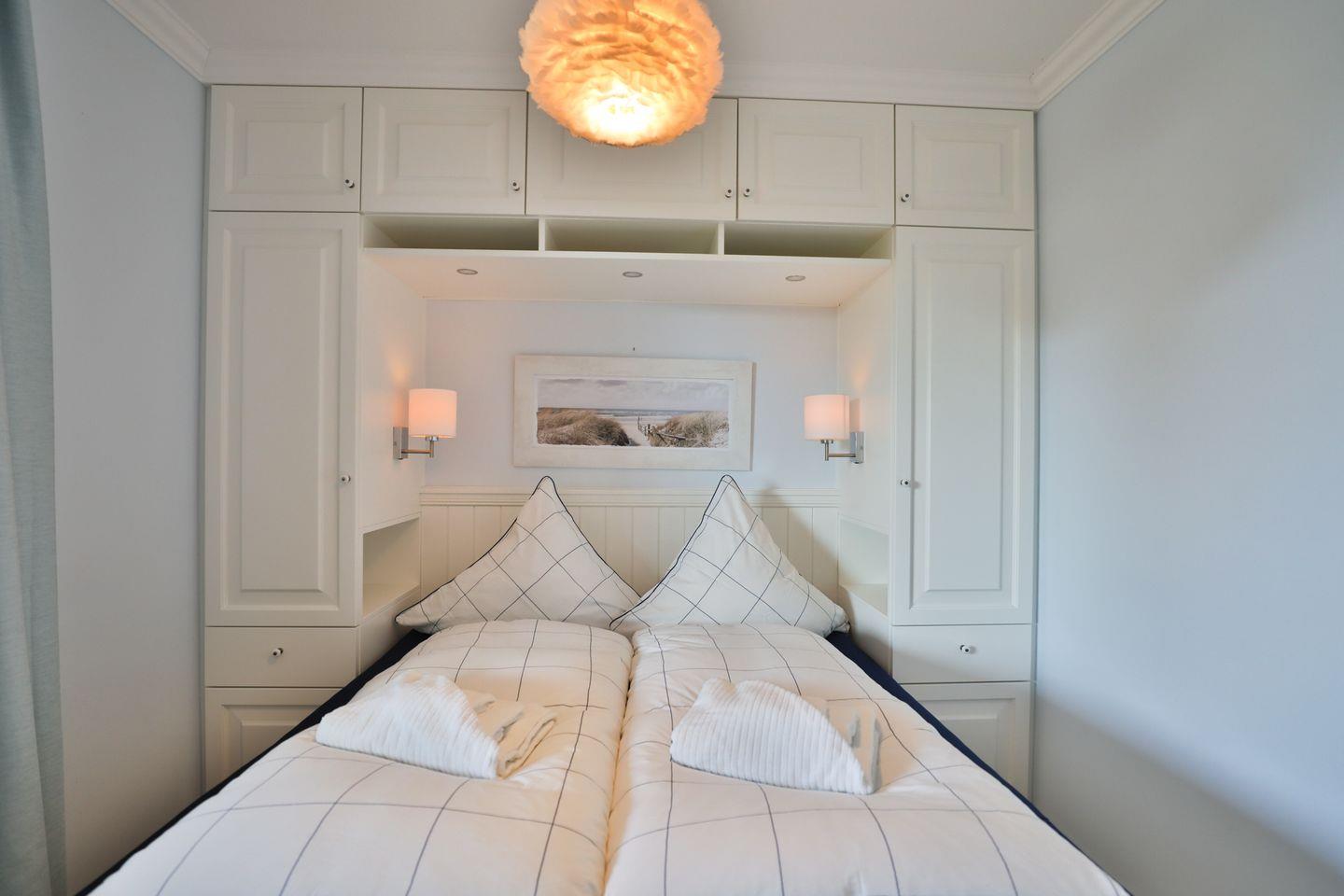 Im Schlafzimmer erwartet Sie ein äußerst komfortables Doppelbett und ausreichend Stauraum im geräumigen Kleiderschrank.