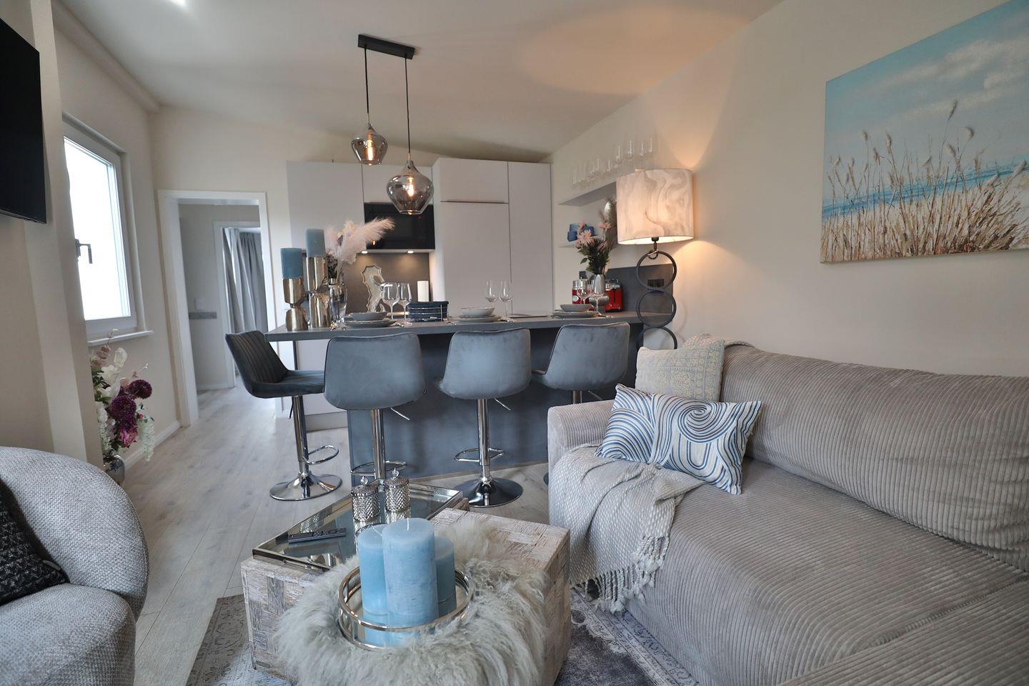 Das moderne Ferienhaus im Sommer 2025 fertiggestellt überzeugt mit einer voll ausgestatteten, offenen Küche und einem großzügigen Küchentresen – ideal für gesellige Abende. Der helle Wohnbereich ist mit viel Liebe zum Detail eingerichtet und lädt zum Entspannen ein. Im separaten Schlafzimmer erwartet Sie ein komfortables Doppelbett und ein hochwertiger Kleiderschrank im Landhausstil.