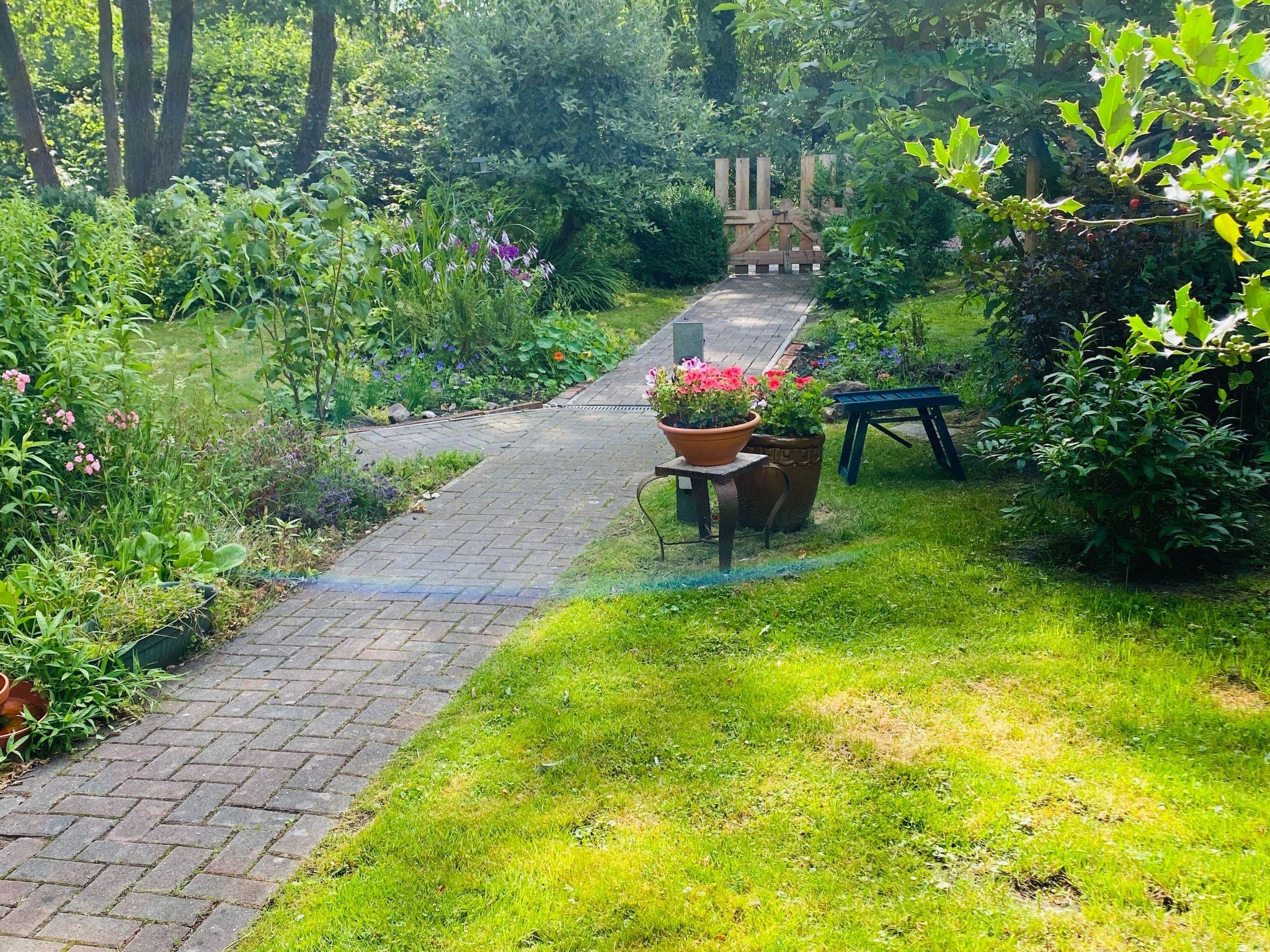 The outdoor area of the holiday flat boasts an inviting terrace, which is perfect for enjoying the quiet morning or evening hours to the full. The garden promises relaxing days outdoors where you can unwind.