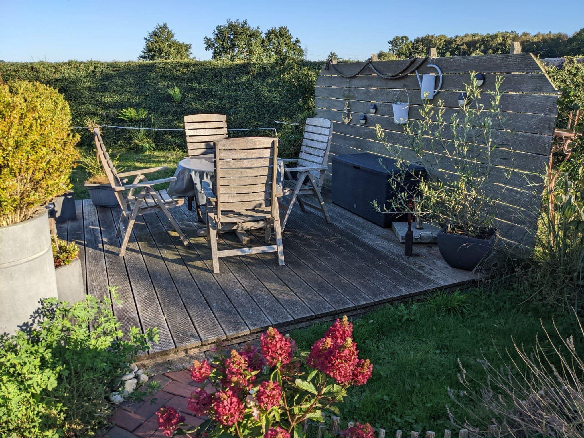 A cycle path is directly from the front door. There are many sunny spots to linger in our farm garden.