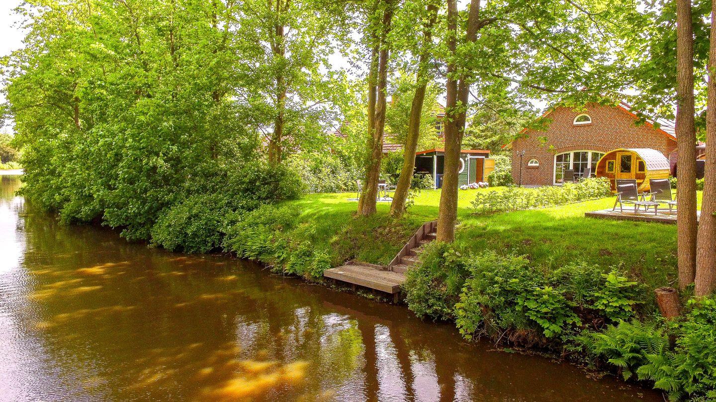 Exklusives Luxus-Ferienhaus direkt am Wasser mit 5 Sternen im ostfriesischen Ambiente mit Bootssteg und Sauna.