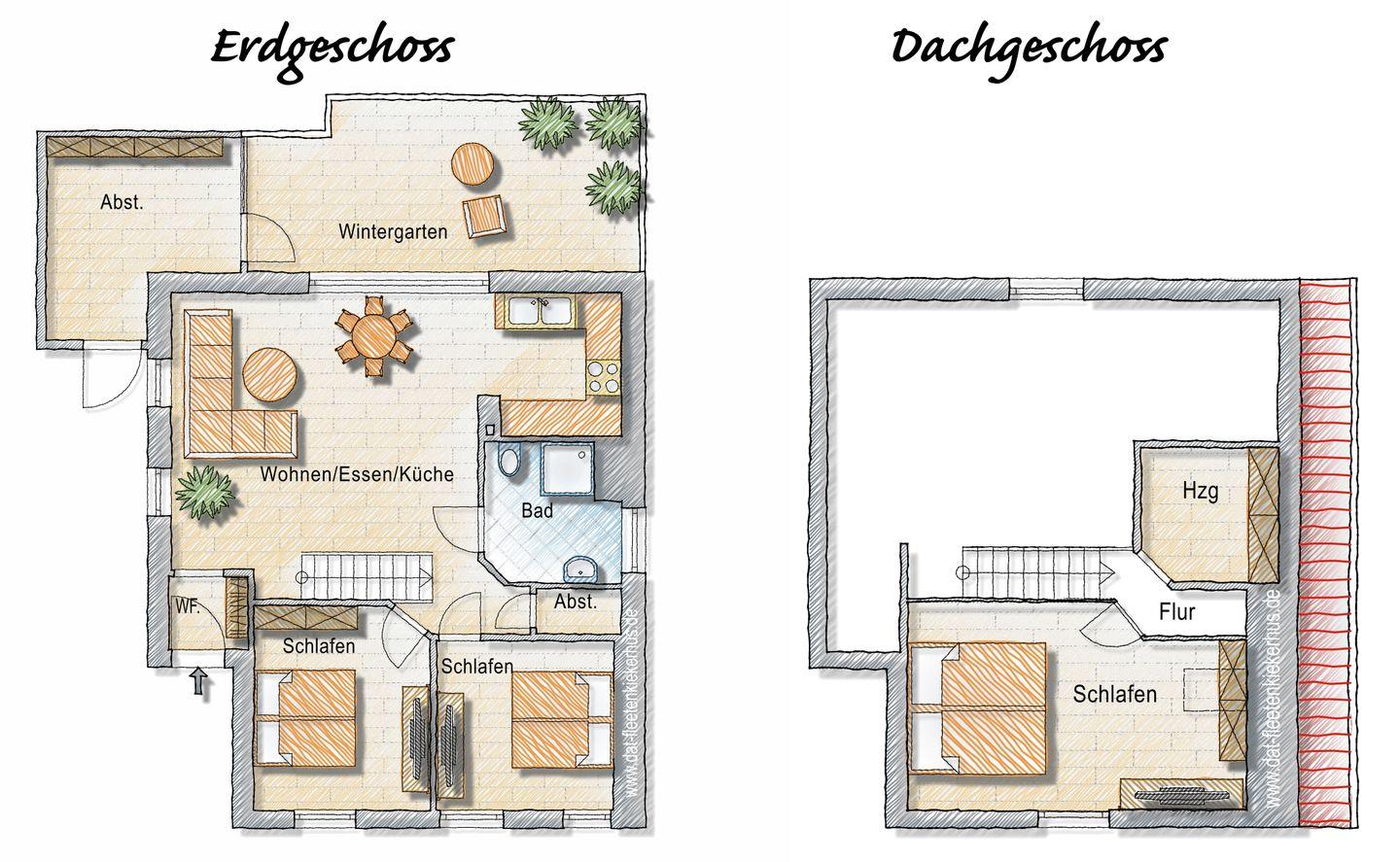 Das Haus bietet mit seinen rustikalen Klinkerwänden, dem sichtbar verbauten Altholz sowie vielen kleinen optischen Highlights auf ca. 80 m² Wohnfläche ein ganz besonderes Ambiente im ostfriesischen Stil. Es wurde vom Deutschen Tourismusverband (DTV) mit 5 Sternen ausgezeichnet.